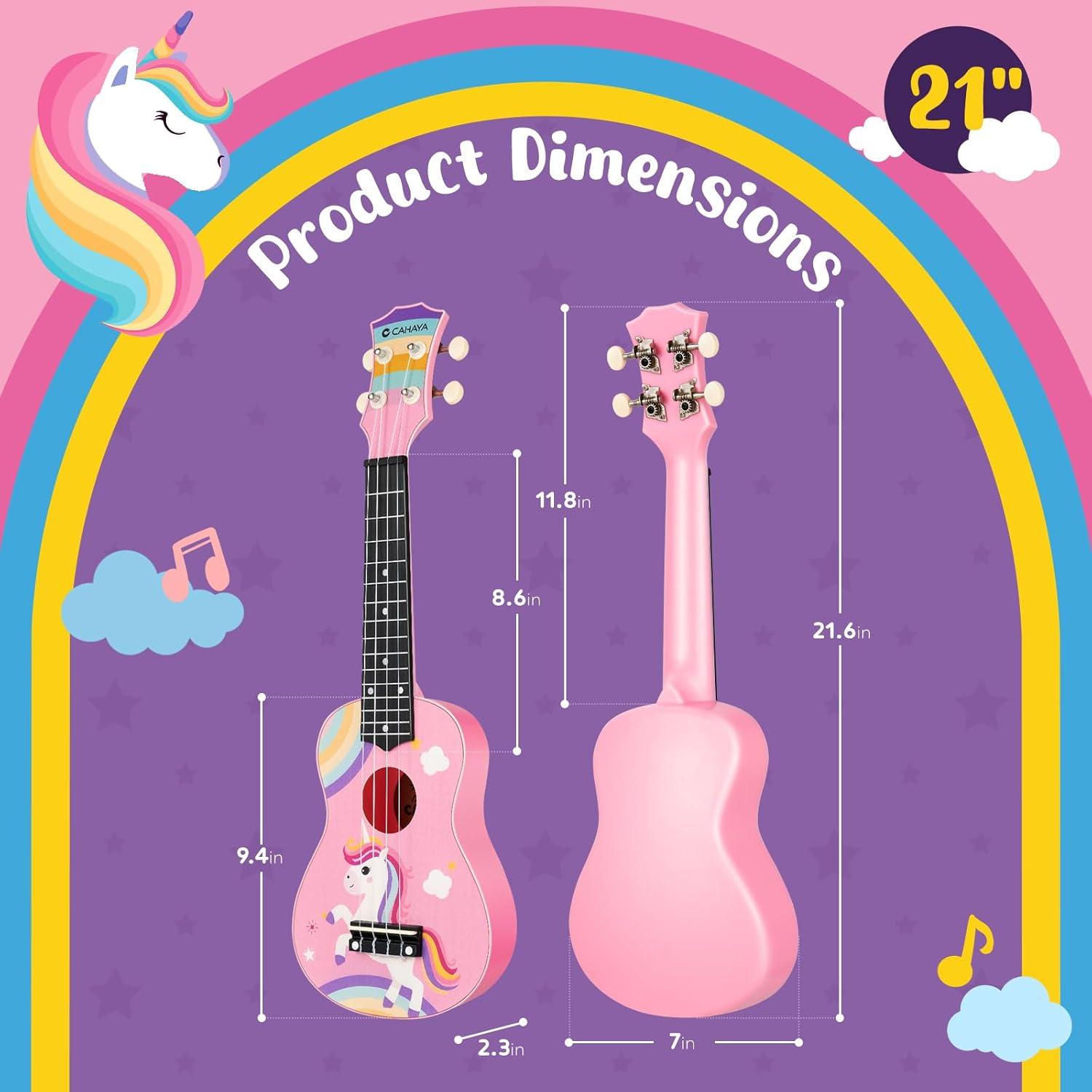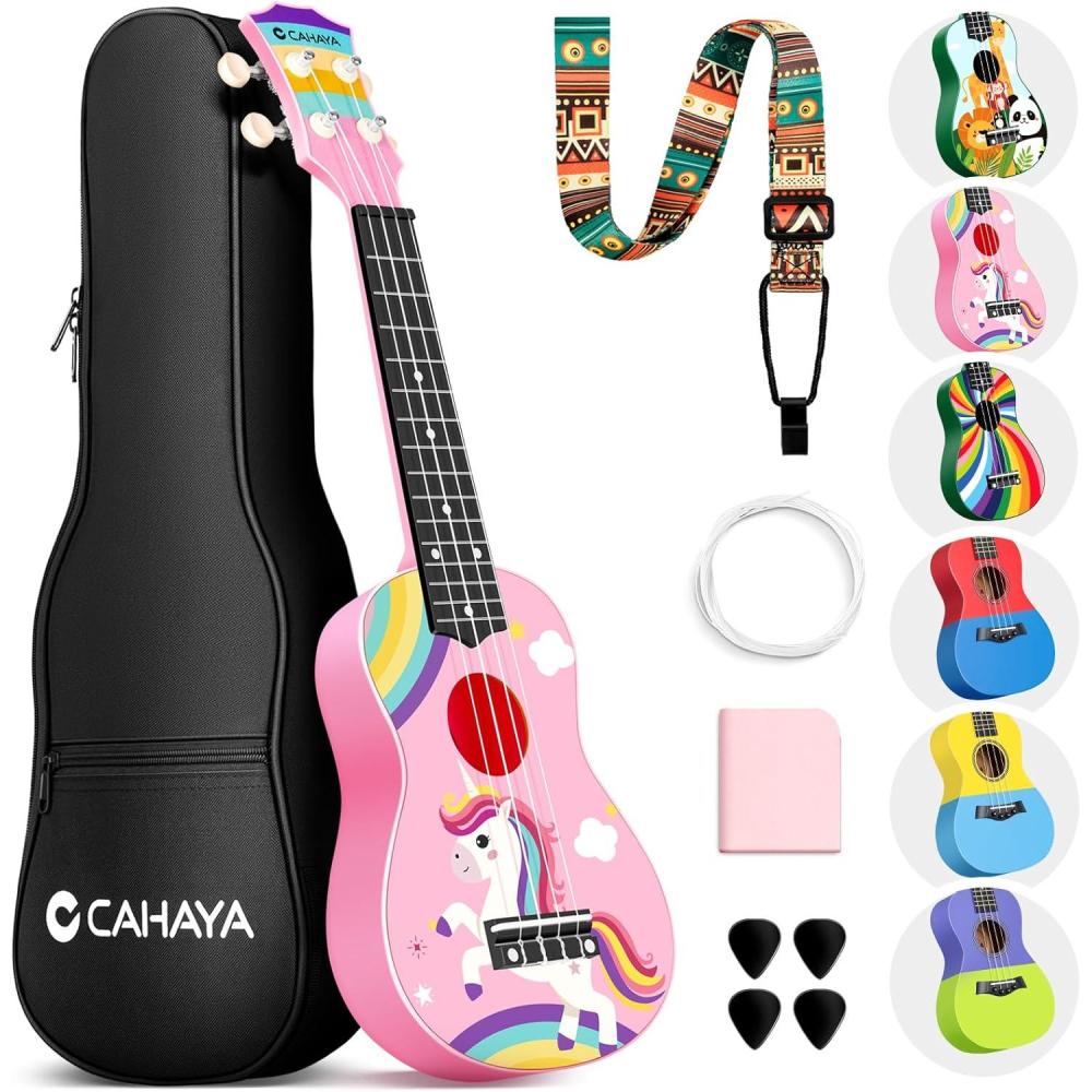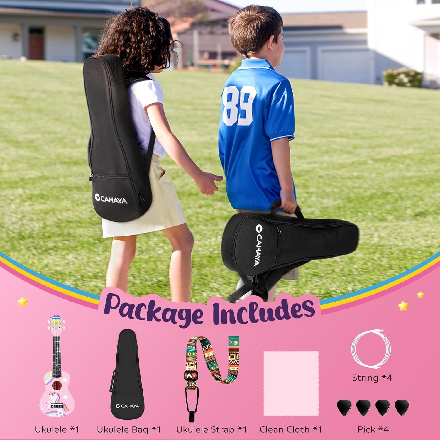 Unique Designed Ukulele:The 21-inch ukulele with exclusive designs by CAHAYA features a unique look and lightweight, easy-to-play build, making it perfect for beginners. It's also an ideal gift, combining practicality and artistry, offering a thoughtful and creative choice for music lovers.