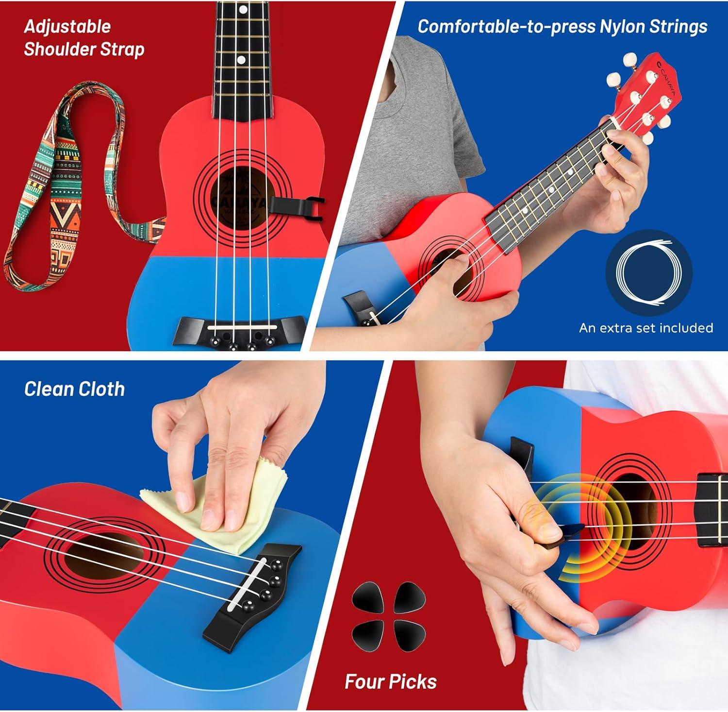 All-in-one Ukulele Beginner Set: To offer a better learning experience, the ukulele comes with shoulder strap,carrying bag, cleaning cloth 4 extra nylon strings and 4 picks. Nylon strings are easier for beginners to play, speeding up the learning process, while the shoulder strap provides a more comfortable playing posture, allowing players to enjoy music for longer periods.