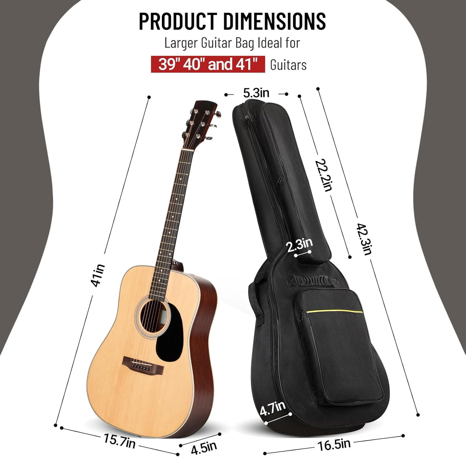 Acoustic Guitar Case: 42.3 x 16.5 x 4.7 in, compatible with 39/40/41 in guitars.