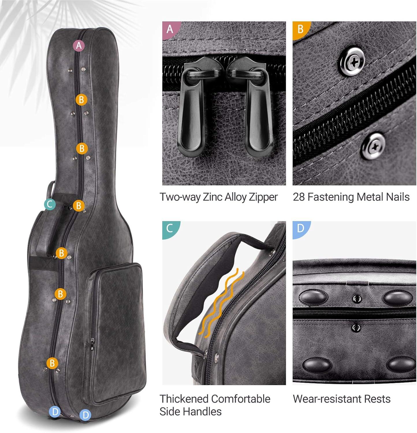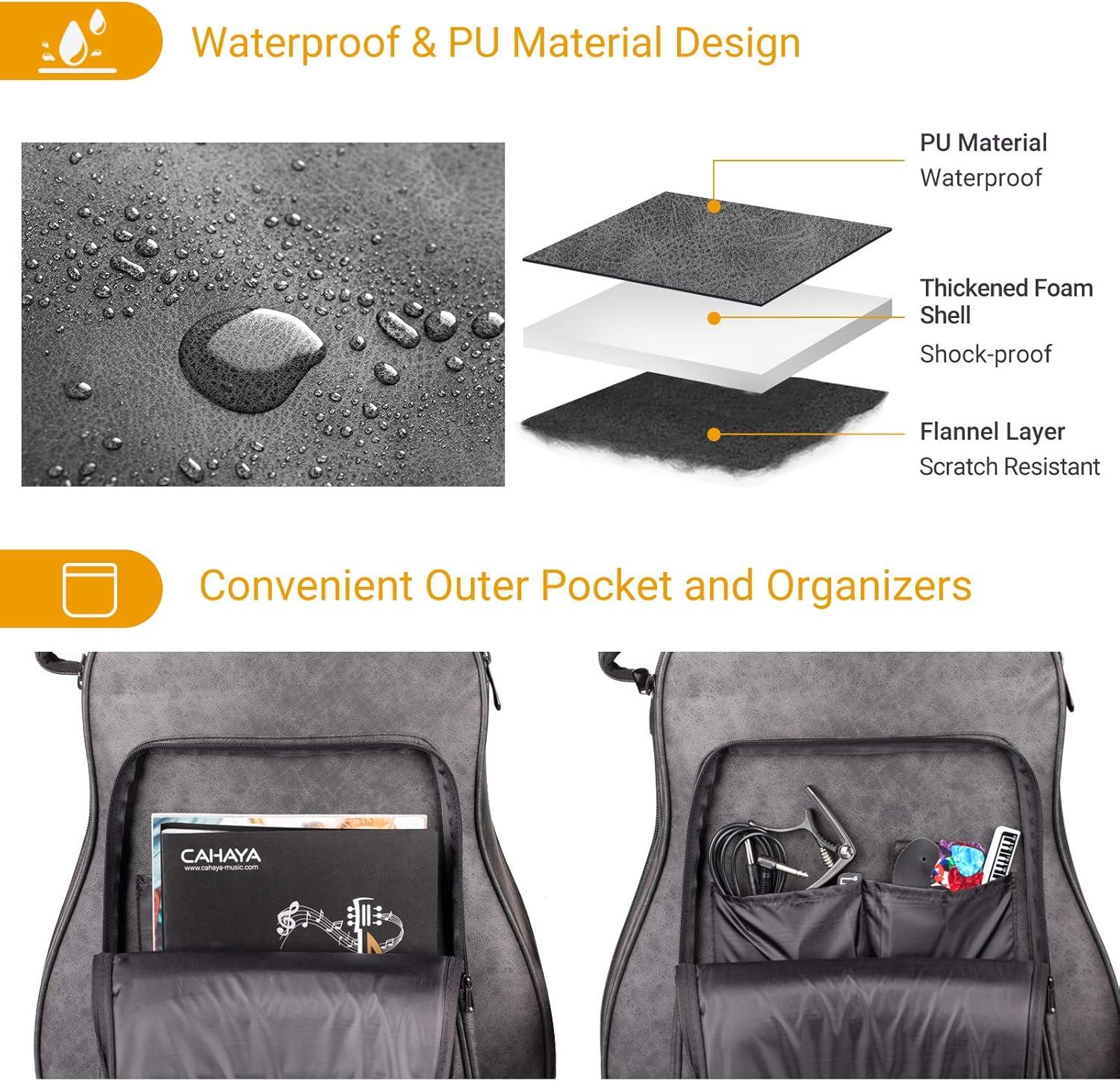 CAHAYA Acoustic Guitar Case Waterproof Hardshell 0.8in Thick Padding Waterproof PU Design Easy Cleaning with 3 Pockets and Storage Box Inside Guitar Hard Case for 40 inch Acoustic Guitar(Black)