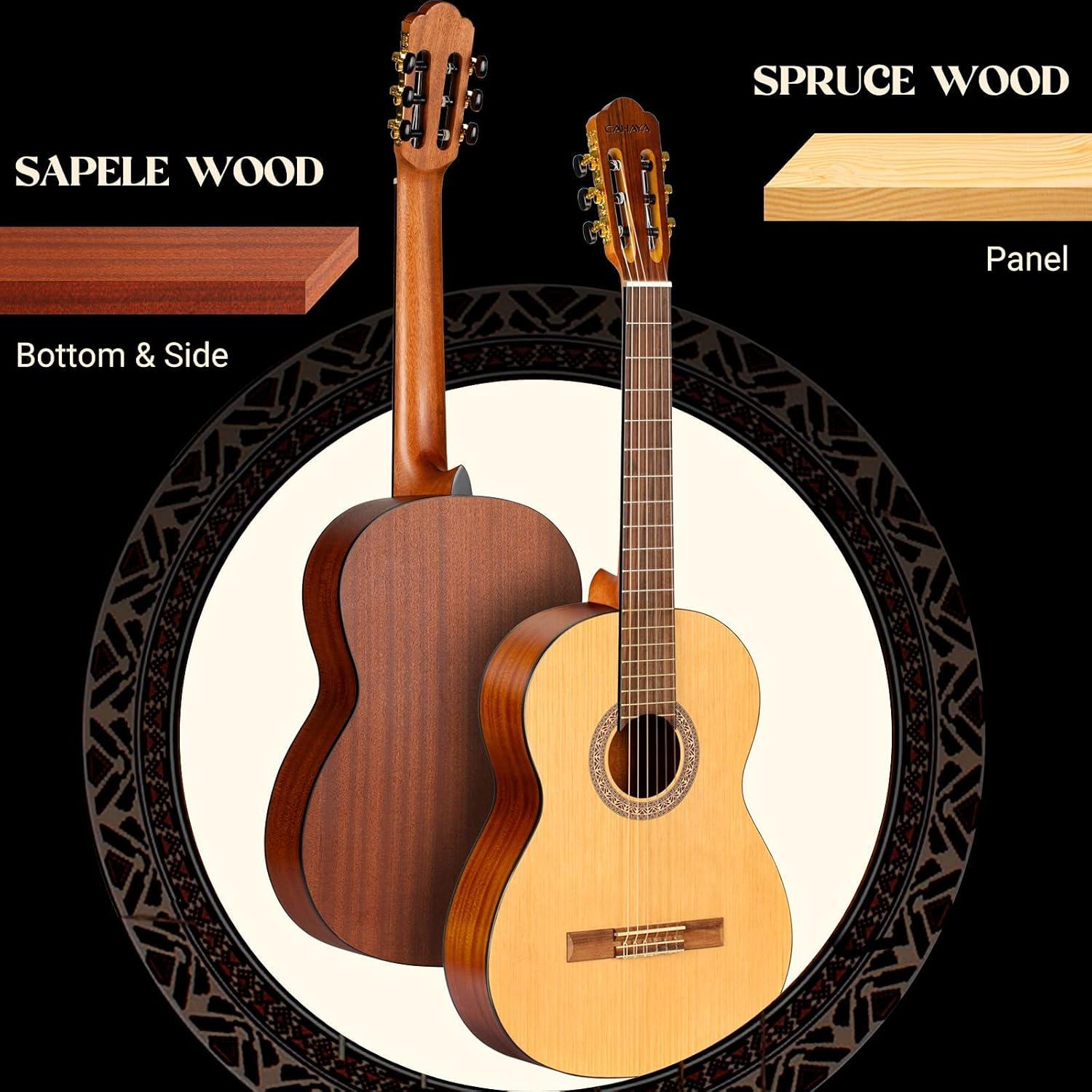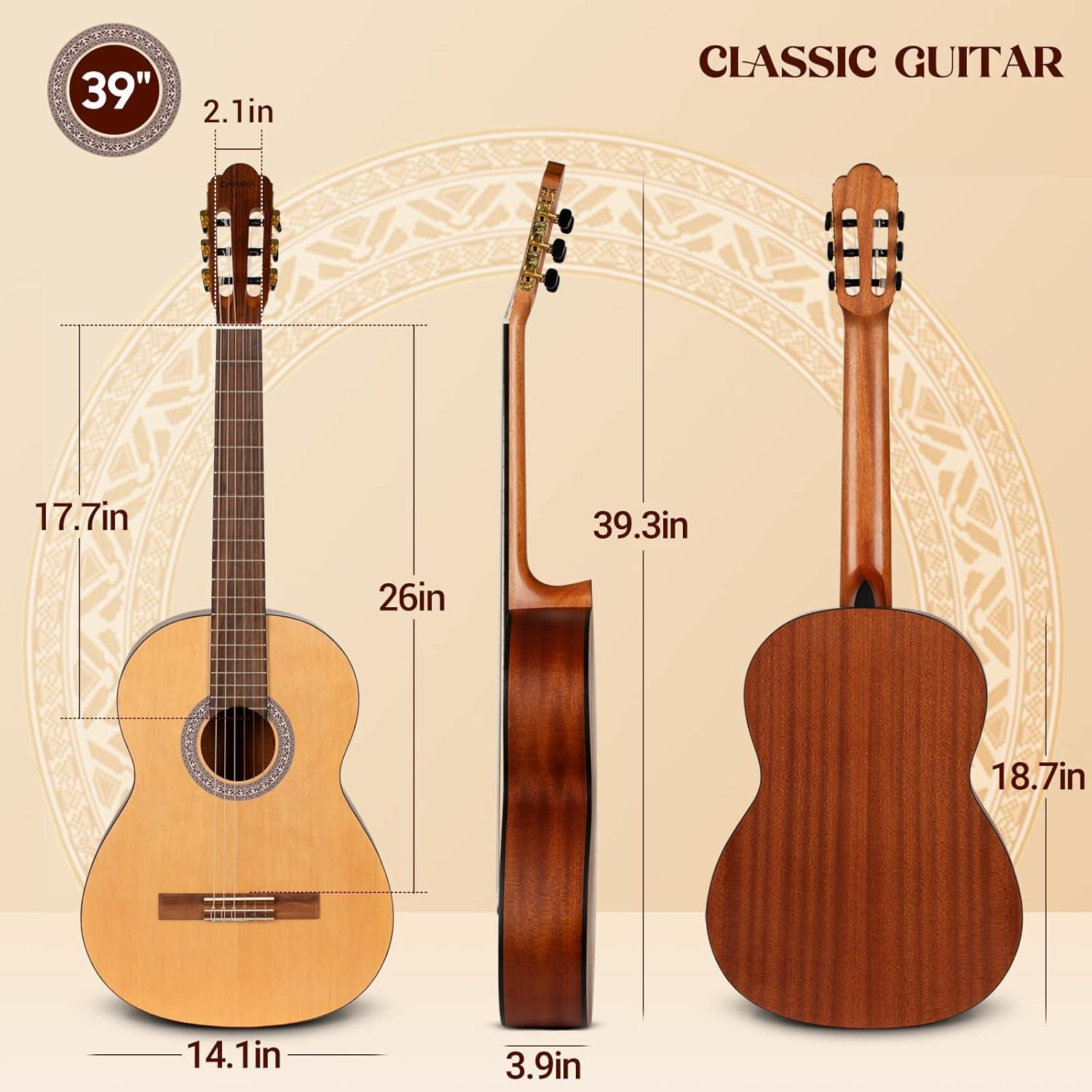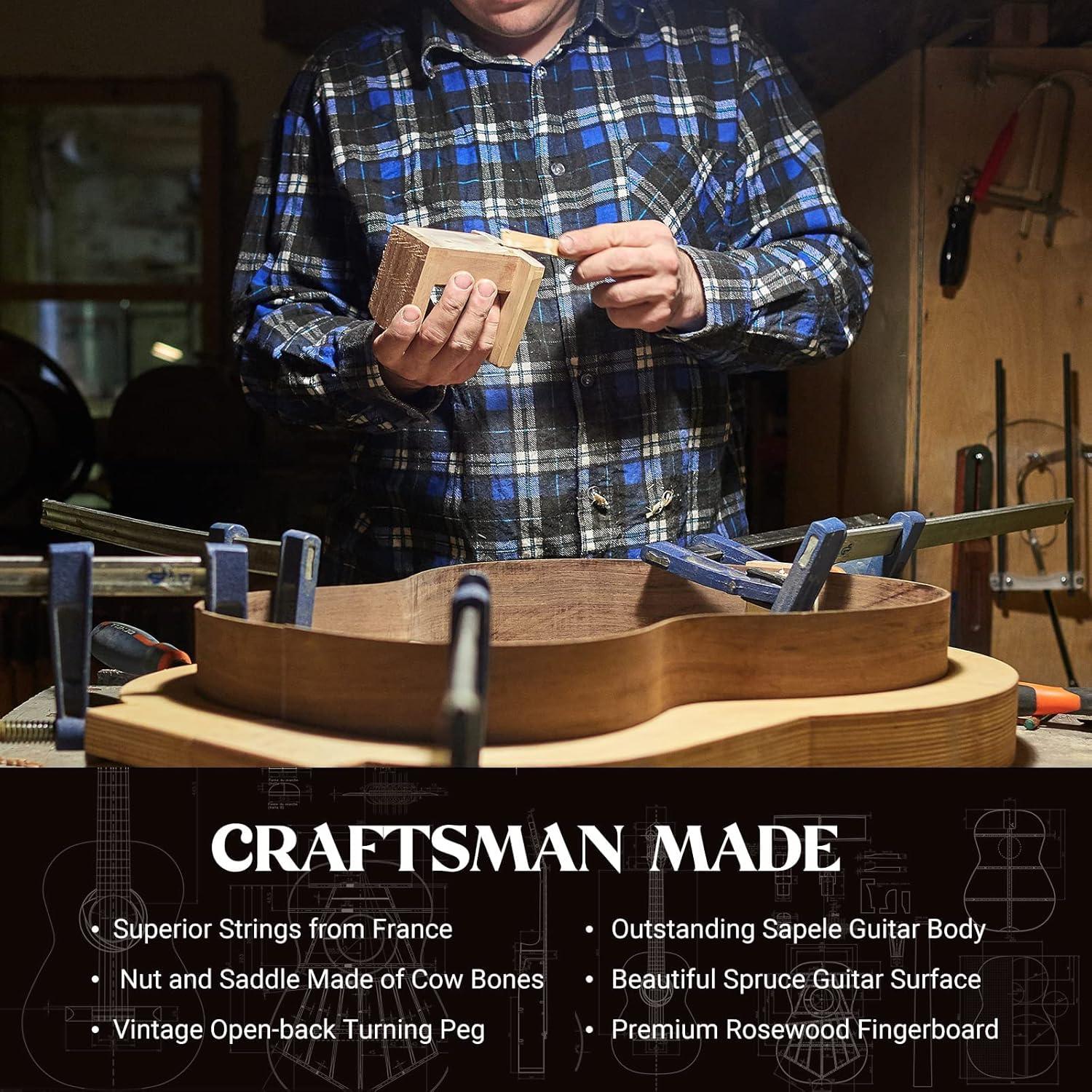 Enjoy Professional Brass Strings: The guitar is equipped with professional brass strings . Allowing you to experience the bright and crisp tones of brass. We also provided extra strings for replacement,you can play with confidence!