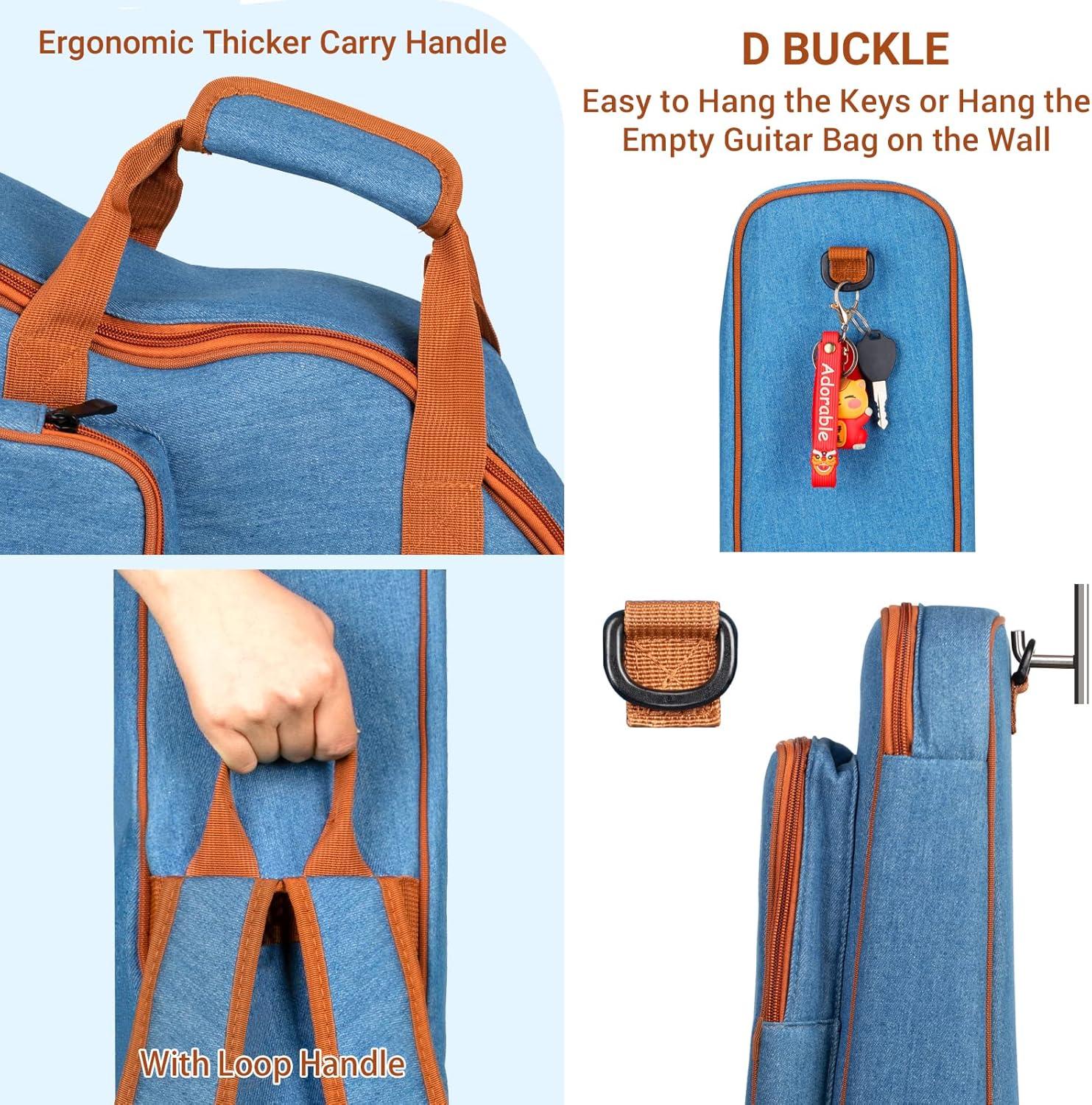 Soft Denim Material: This acoustic guitar bag is made of soft and breathable denim fabric. Soft denim with good stretch, design for long-time use. Different from ordinary guitar bags, this is a lightweight guitar bag, very fashionable and cool to carry with.