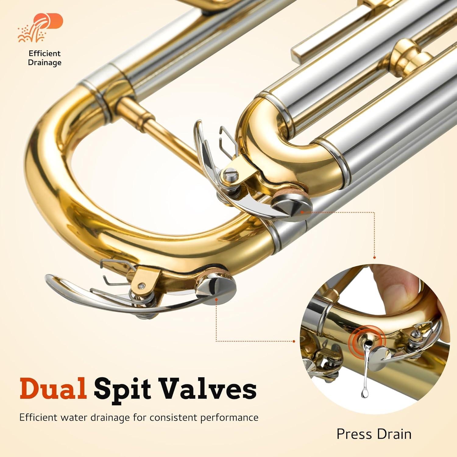 Easy to Transport: The B flat trumpet comes packaged in a hard carrying case, it has two straps that can be configured for a backpack style carry, or on the side for an over the shoulder carry. The case has room for all the accessories, meeting different needs and making it convenient to take your instrument on the go.