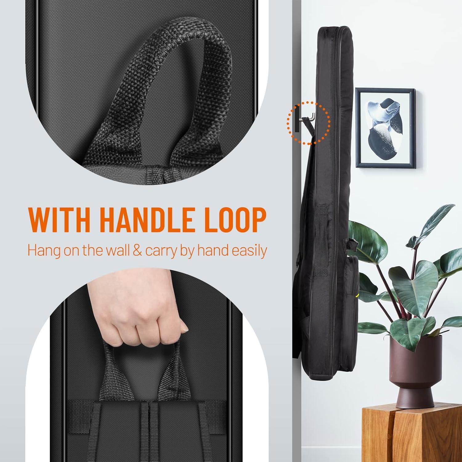 Back Loop Handle: There is a loop handle on the back of the guitar bag, which can be hung on the wall when not in use. Keep your guitar bag clean and save space.