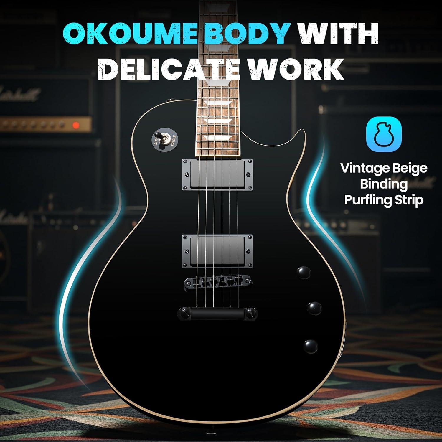 CAHAYA Electric Guitar Kit 39 In - Full Size LP Beginner Electric Sett with Solid Okoume Body 2 Humbucker Pickups, Maple Neck, Gig Bag, Strap, Cable for Adults Teen Black(Black)