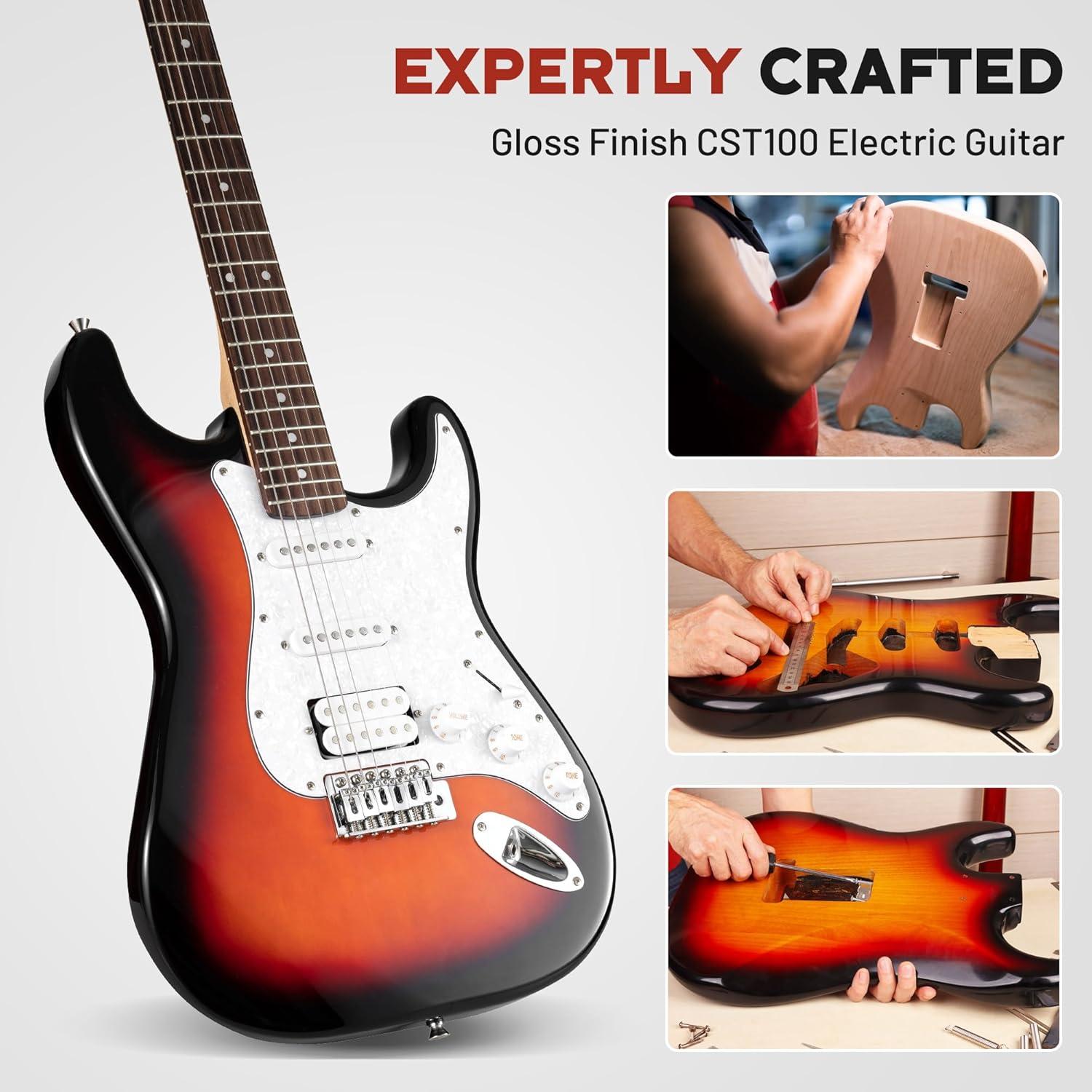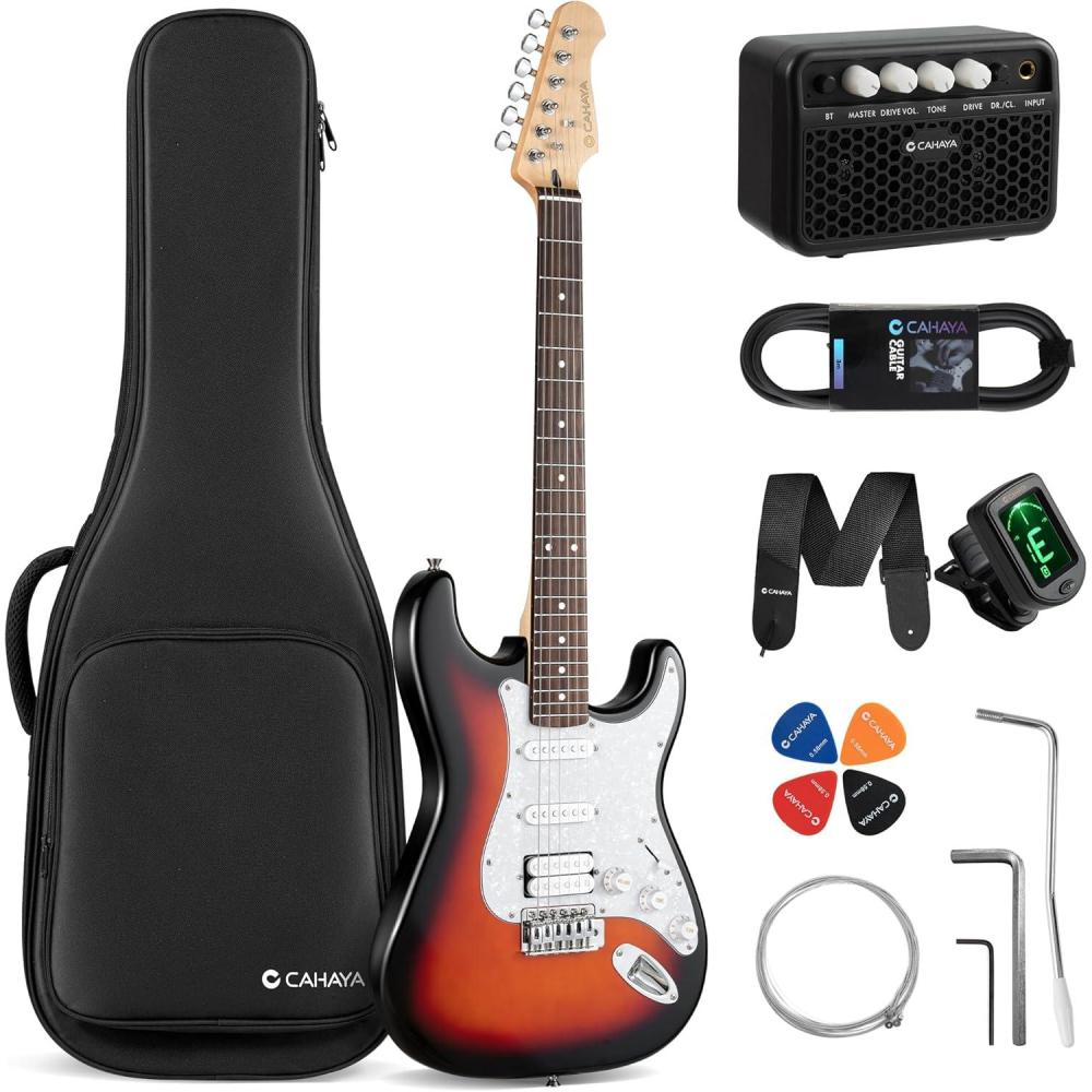Exquisite Hand Crafted: This beginner electric guitar features a comfortable “C” shaped maple neck, solid poplar body and laurel fretboard. 22 copper-nickel frets on neck and fingerboard with fret position markings. CAHAYA electric guitar set is hand crafted with great attention to detail, boasts a smooth finish that shows its premium construction. Classic design for added extra comfort and exquisite hand crafted ensures excellent sound.