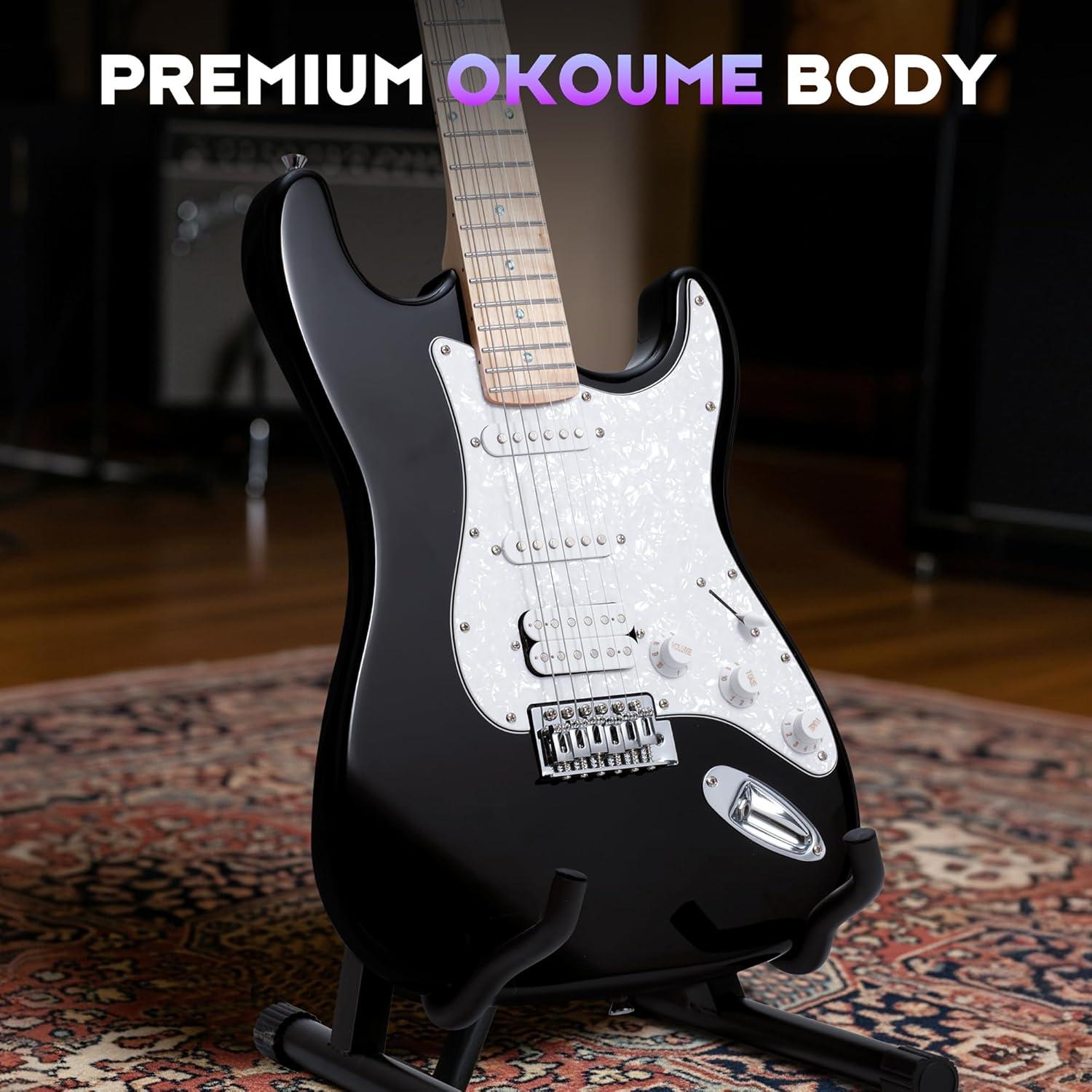 C-shaped maple neck & solid wood body: This beginner electric guitar features a classic “C”-shaped maple neck that delivers exceptional comfort and natural playability. Supporting all playing techniques while ensuring easy even during extended practice. The body is made of solid okoume, which brings a rich low end, clear mids, and bright highs. Balanced tone and lasting durability, the perfect foundation for your musical journey.