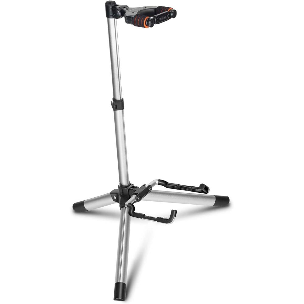 Lightweight but Stable: We enlarge and widen the tripod base. The tripod legs extend farther outwards for a steadier footing. The head of guitar stand covered with thick soft foam padding and the cradle features sturdy rubber materials to prevent accidental scratches.