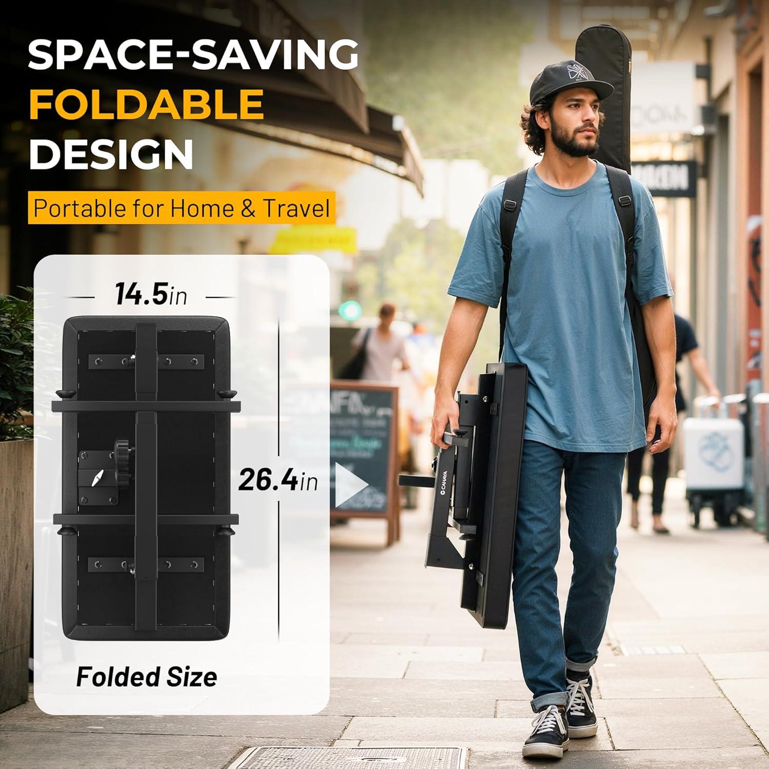Portable & Space-Saving Foldable Design: This compact piano bench folds into a space-efficient size that fits easily in most car trunks. The lightweight yet durable construction makes it ideal for transport to gigs, lessons, or rehearsals. When folded, its space-efficient design allows convenient storage in tight spaces like small apartments or music studios.
