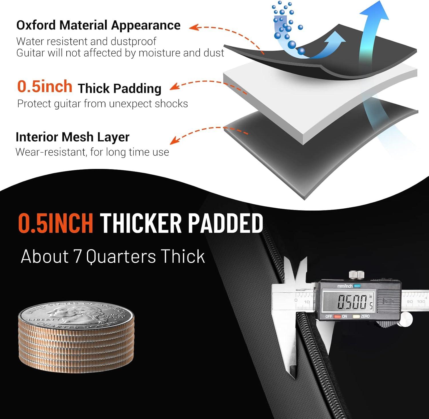 Premium guitar case compatible with 40/41/42-in guitars, Length: 42.9”, Neck width: 5.5”, Body thickness: 4.96”