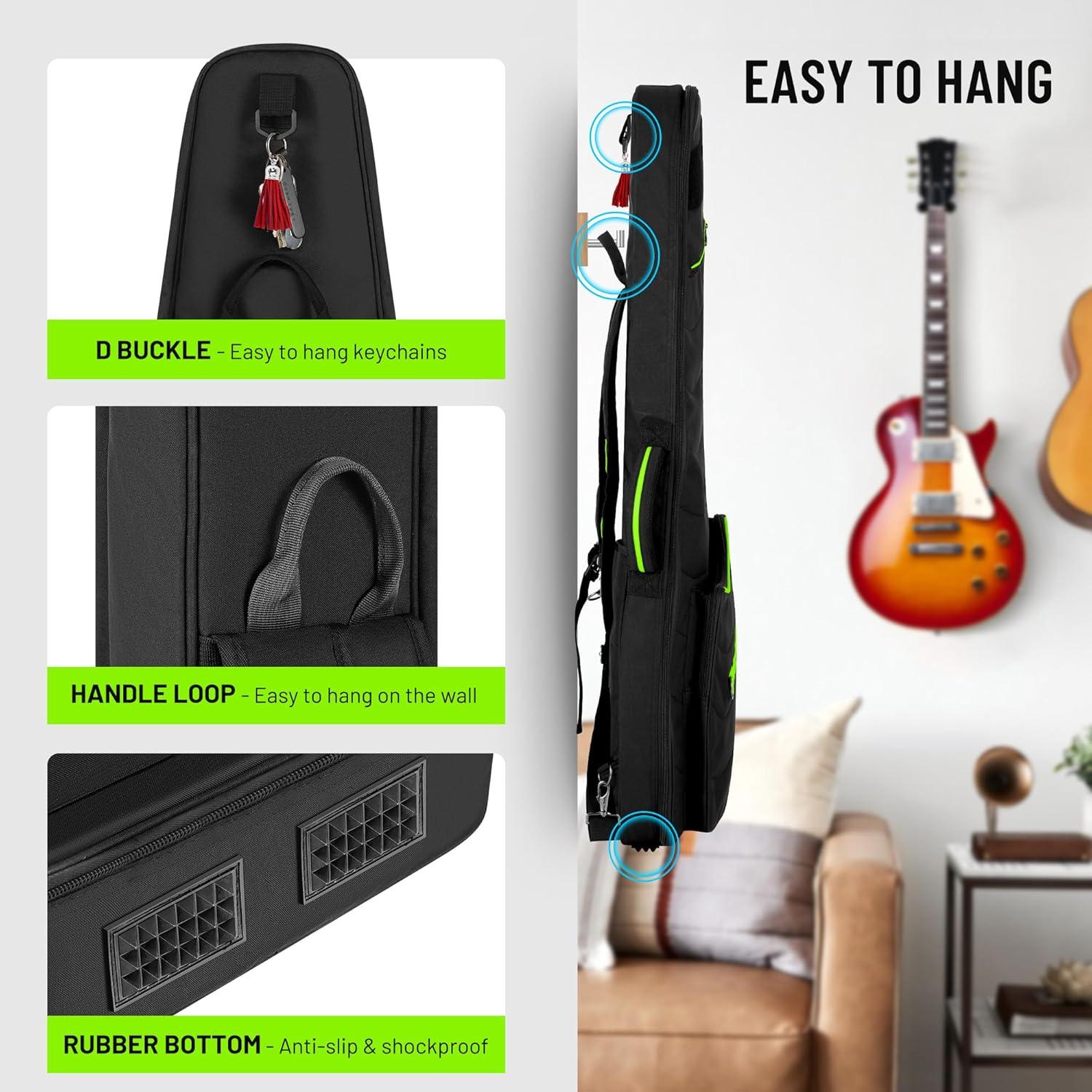 Multi Carrying Ways: This guitar bag features an adjustable and removable shoulder strap for comfort during transport. You can carry it like a backpack, so you don't have to hold a heavy hardshell guitar case, freeing up your hands and making walking easier. When not in use, the shoulder straps can be stored in the back compartment. Also, with a convenient side handle, you can easily grab and go, making it perfect for quick trips or when you need to go through crowded spaces.