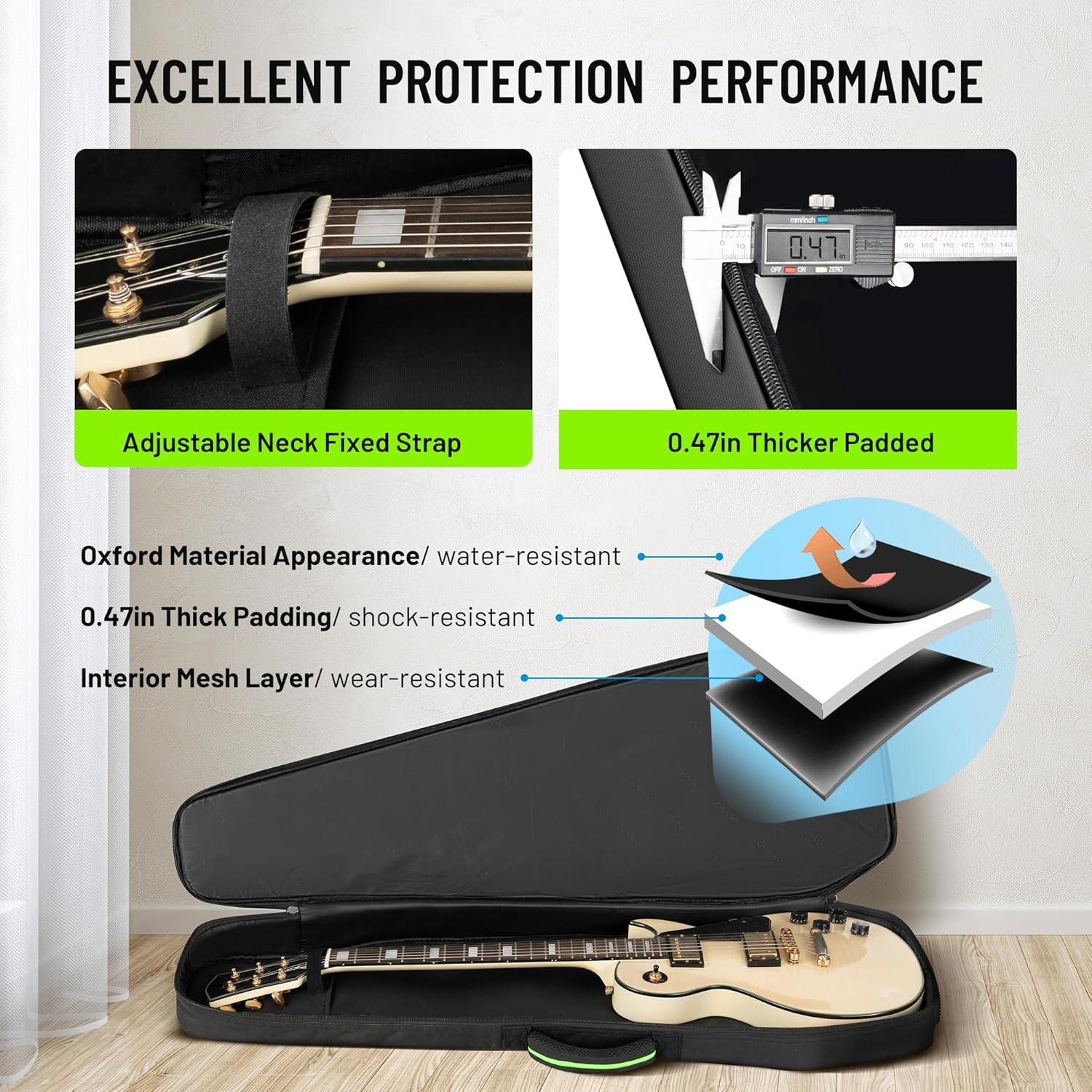 Built to last: This guitar bag is featuring a three-layer construction with a thickness of 0.47 in padding which is thicker than other traditional guitar cases to provide maximum protection. The specially designed reinforced zippers will not break or get stuck. Additionally, the neck strap keeps your guitar firmly in place, preventing any movement during transport. Product Size: 43.3″ × 14.5″ × 4.7″, fits for 40″/41″/42″ acoustic guitars.