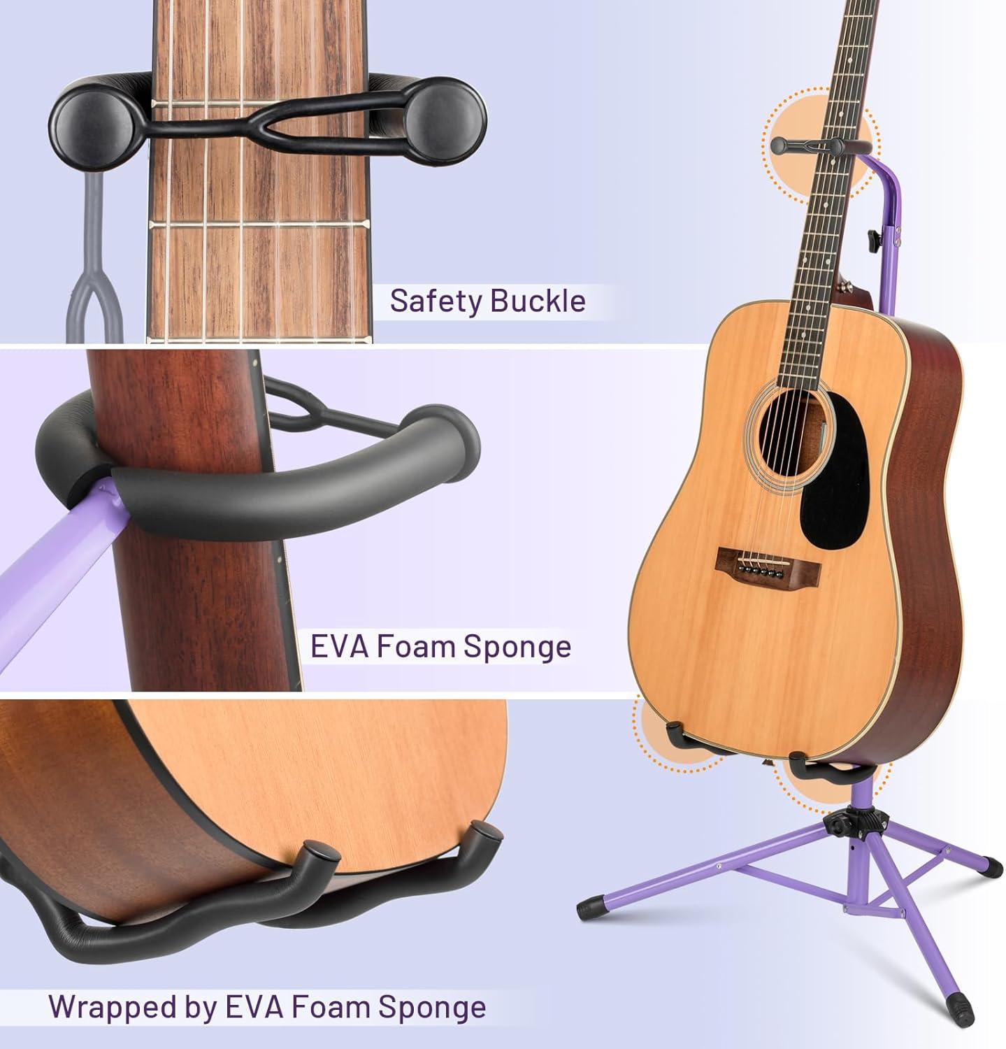 Reinforced Guitar Stand: According to the voice of our valued customers, we have strengthened the connection between the cradle and the bracket. All the points of guitar and the stand in contact are wrapped with thick sponge. The delicate and thoughtful design is all about protecting each musical instrument.