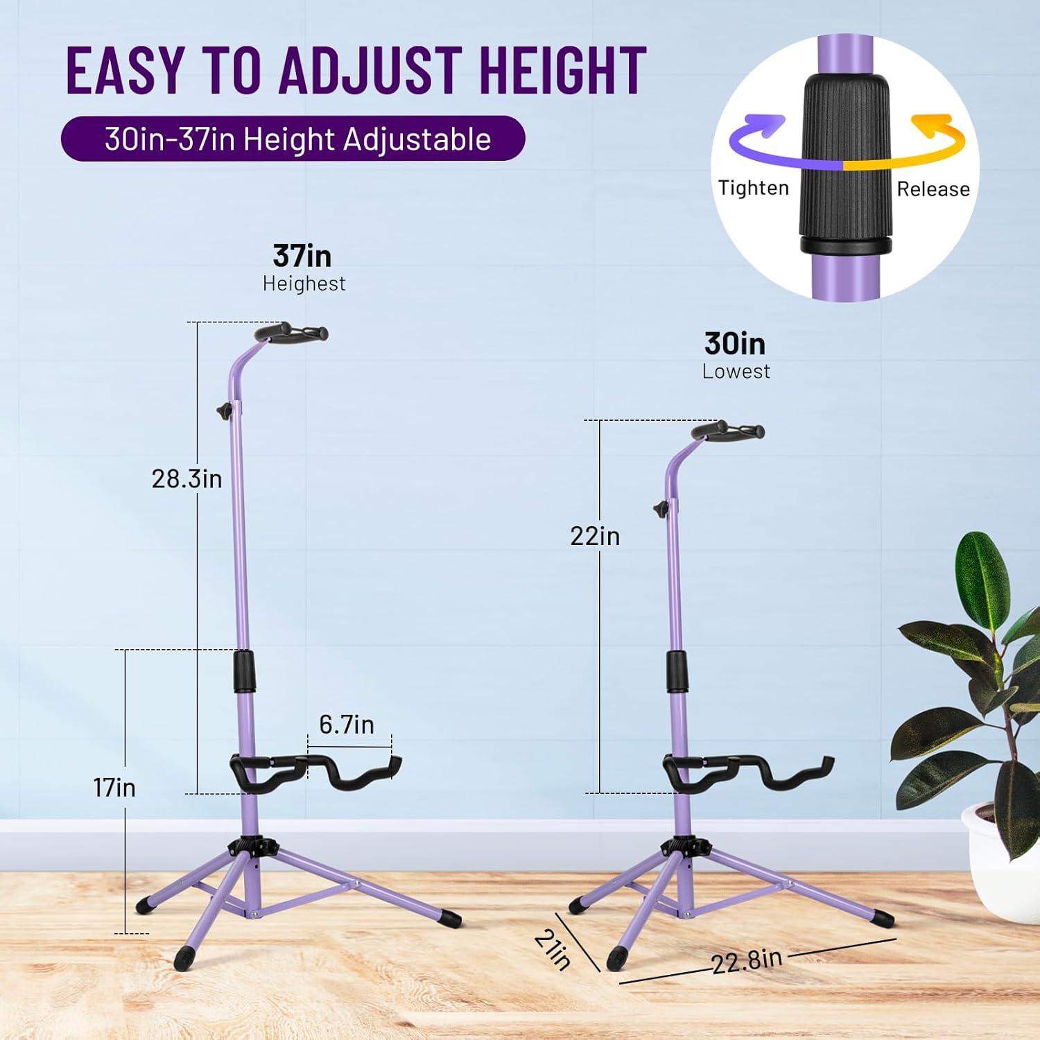 Height Adjustable Guitar Stand: Compared with traditional guitar stands, the biggest feature of this guitar stand is that it can be rotated to adjust the height from 30.7″-37″. There is also a fixing screw on the top of the guitar stand to ensure that the guitar stand head wont bend.
