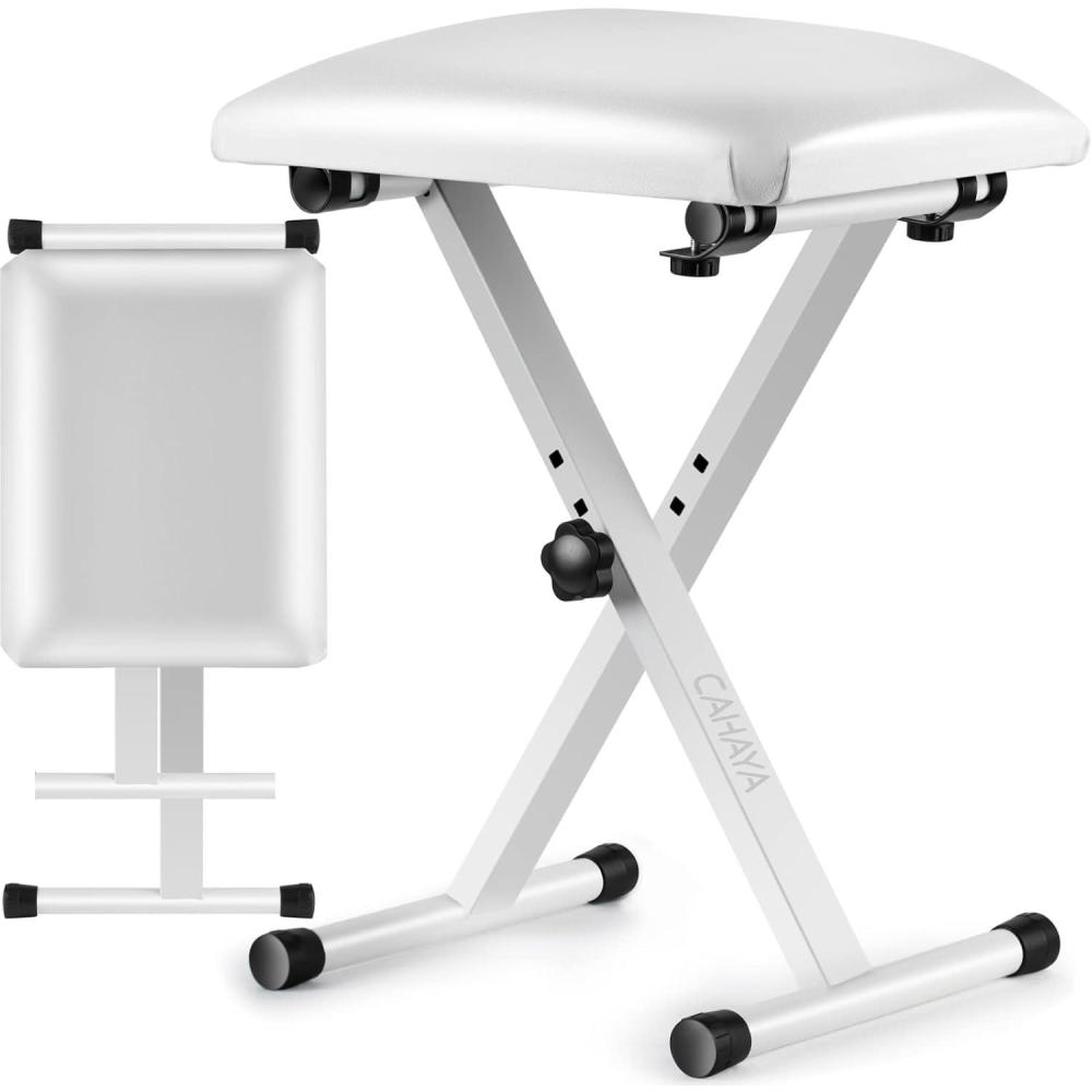 CAHAYA Keyboard Bench X-Style 3.5in Thick Padded Cushion Piano Bench Adjustable Height Keyboard Stool Chair Seat for Electronic Digital Keyboards Pianos CY0296(White)