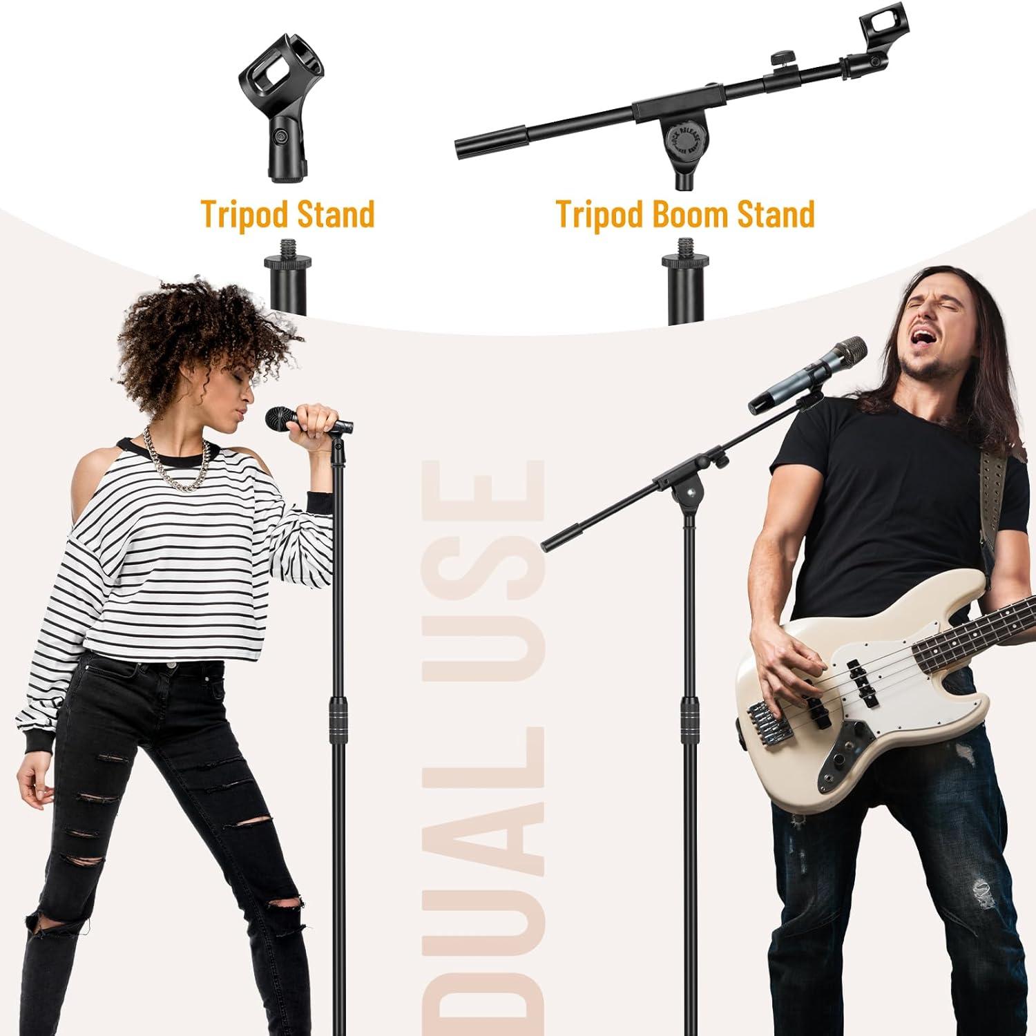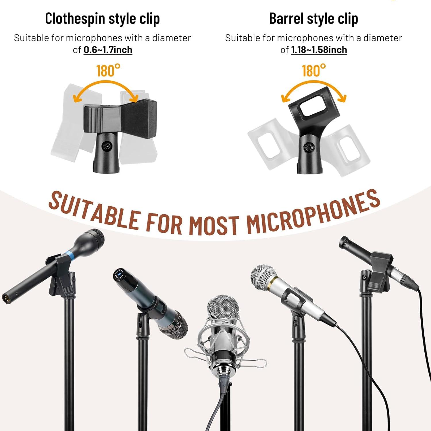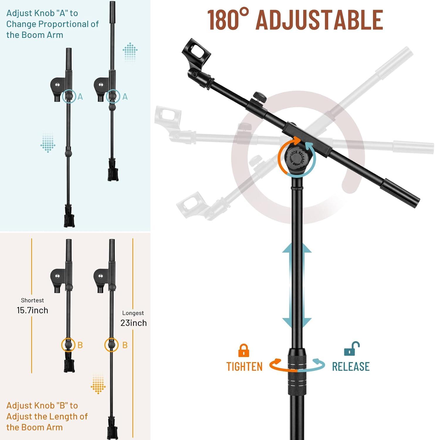 Extendable & Removable Boom Arm: boom arm extends freely within 16.9”-30.1” (43cm -76.5cm) and 360° angle rotatable through adjustment knobs which allows for easy positioning. Simply remove the boom arm and attach microphone clip to convert the mic stand into a traditional straight mic stand.