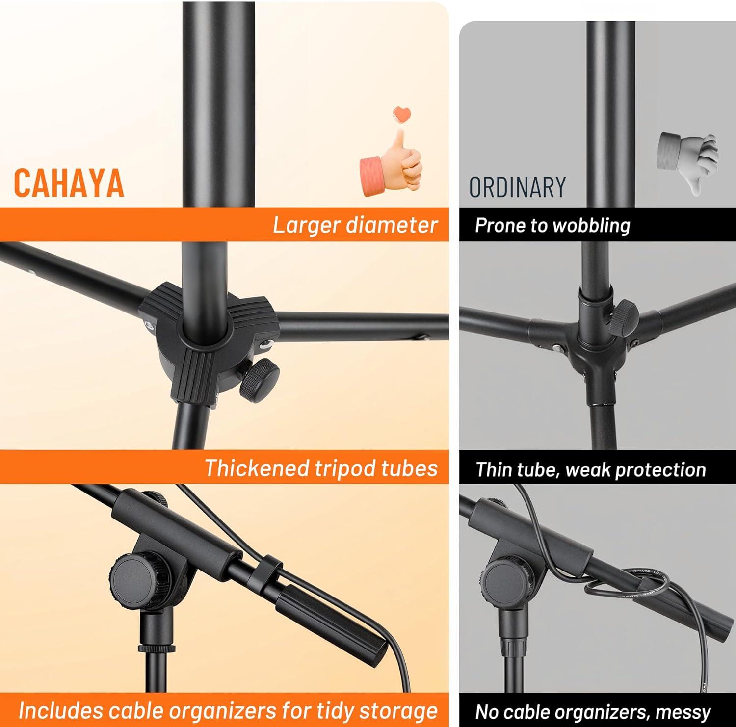 Stable Tripod Base: CAHAYA tripod boom microphone tripod legs extends further than others which can stand holds microphone securely in place. Non-slip foot cover prevent it from moving around.