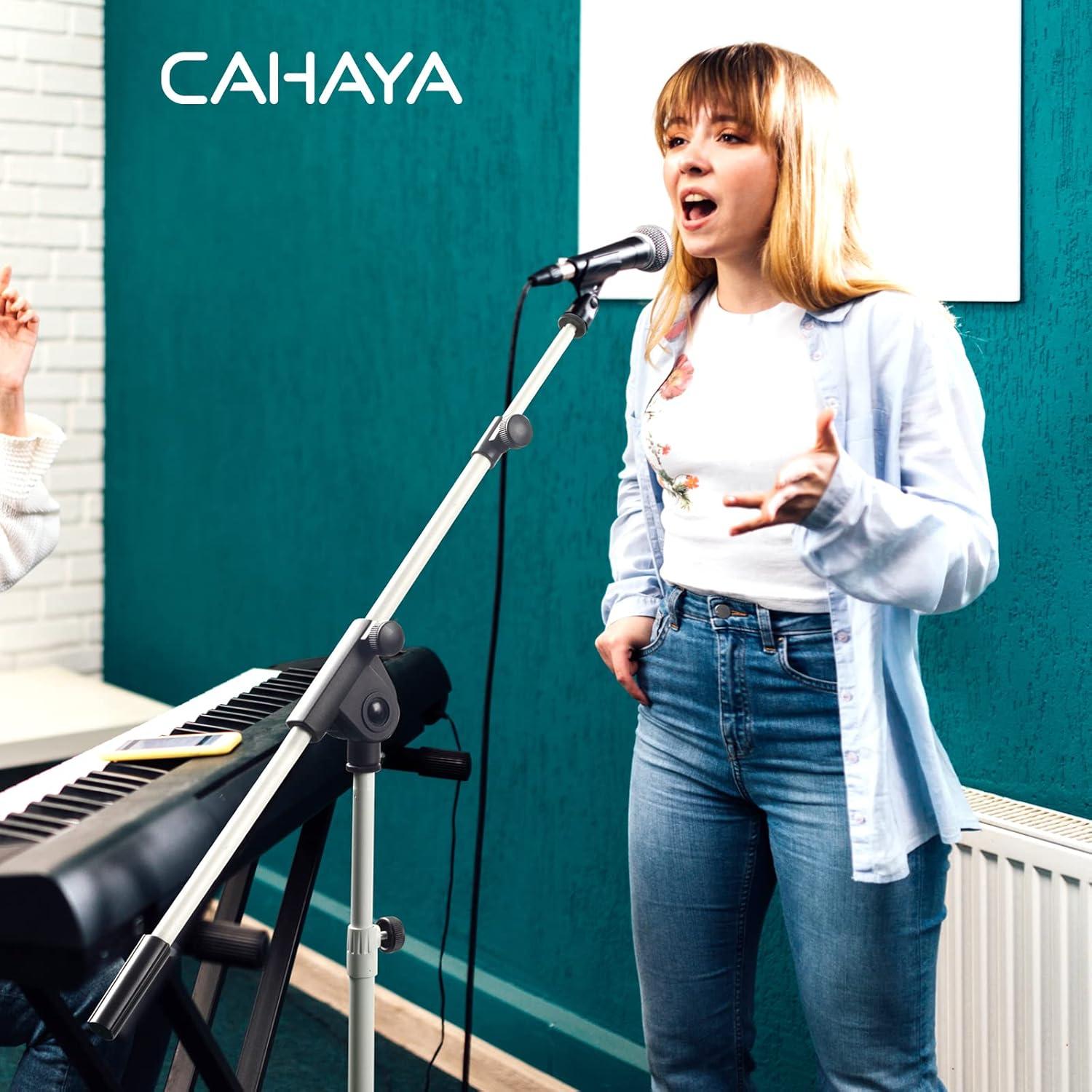 Stable Tripod Base: CAHAYA tripod boom microphone tripod legs extends further than others which can stand holds microphone securely in place. Non-slip foot cover prevent it from moving around.