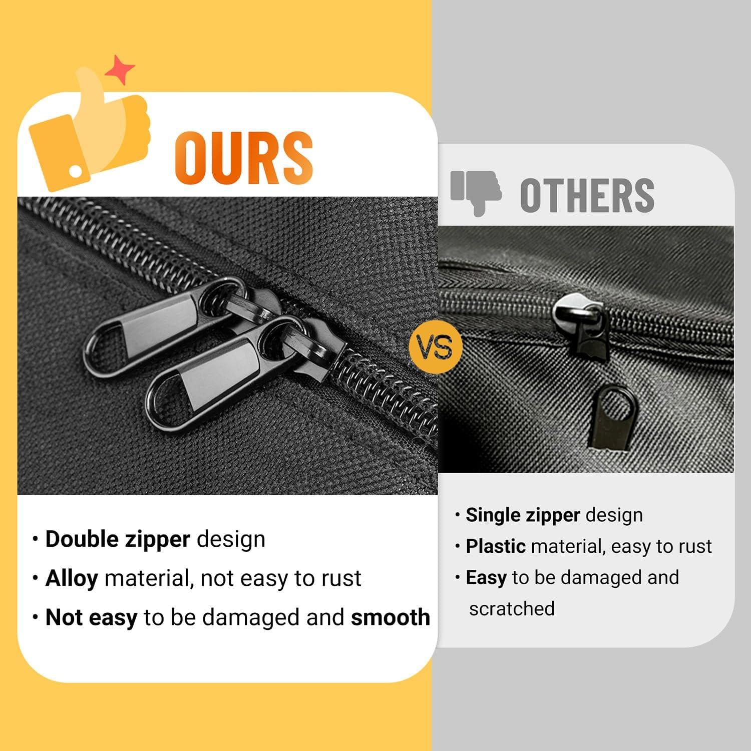 Smooth Two-way Zipper: The smooth double-ended zipper with metal zipper heads, which is more durable and allows us to take out the music stand or microphone stand or other accessories from any position at any time.