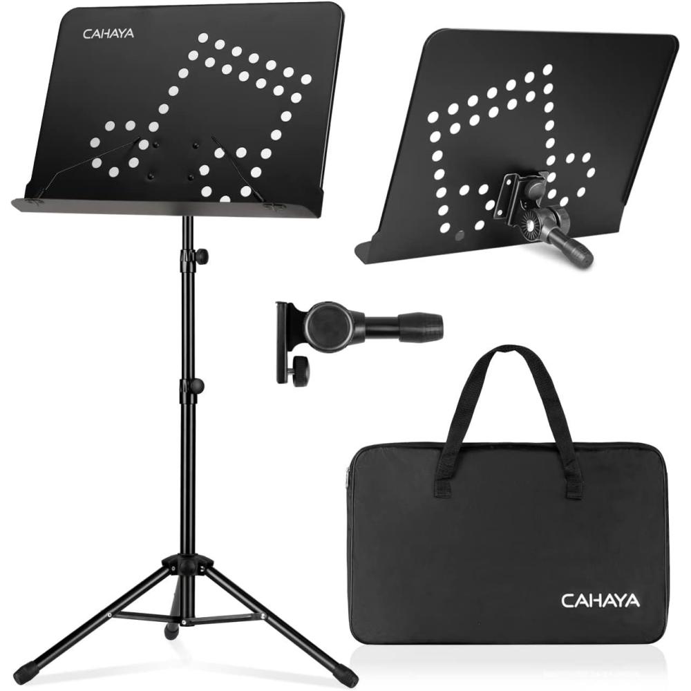 Max Loading Capacity 11lbs/5kg: CAHAYA music stand fits for holding sheet music books, projector, laptop computer, notebook, iPad, bible books, item weighs from 1oz to 11lbs.