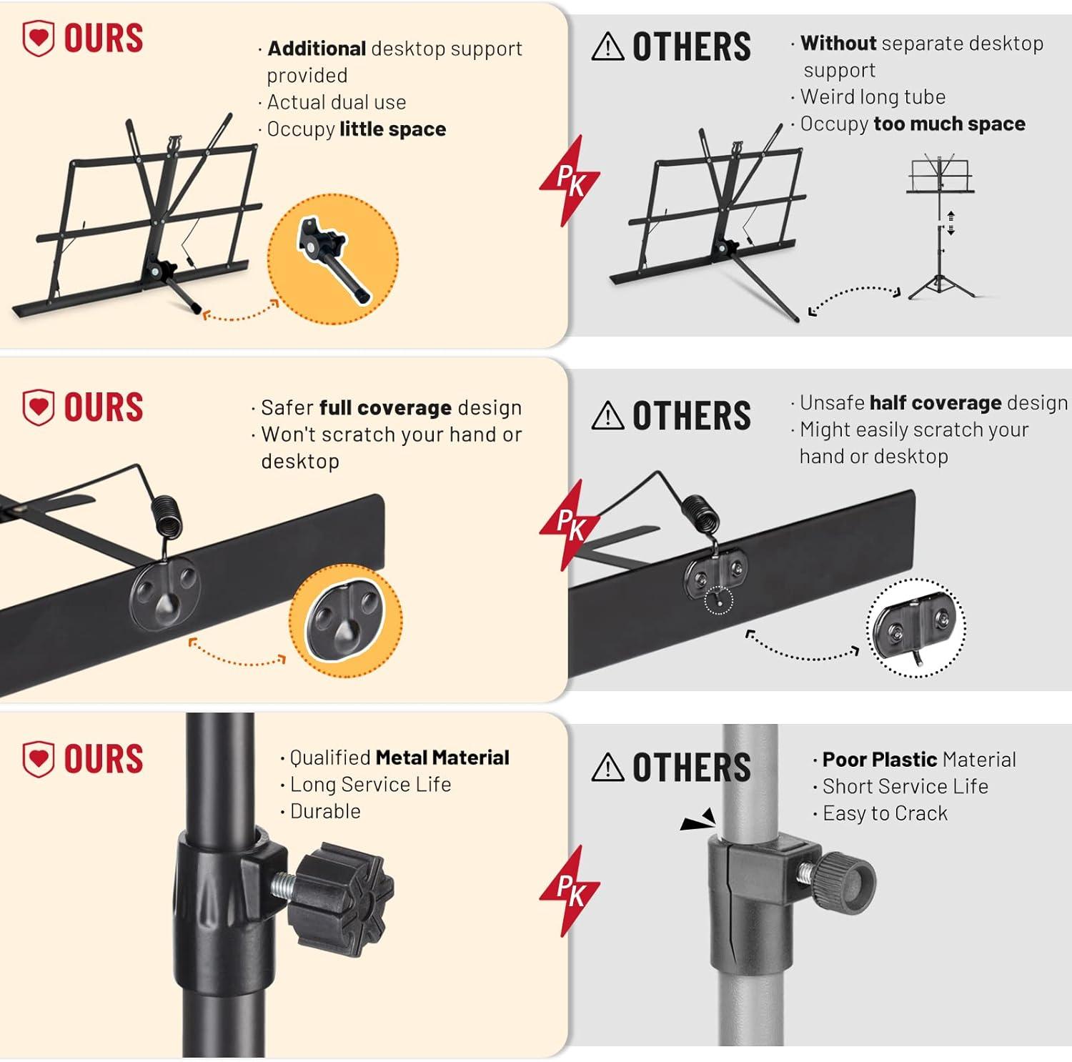 COMPLETE SET WITH EXTRA ACCESSORIES: In addition to the stand, you’ll receive a music sheet clip holder and a convenient carrying bag. These extras make it easy to keep your sheet music organized and transport your stand to school, orchestra, choir, or band practice.