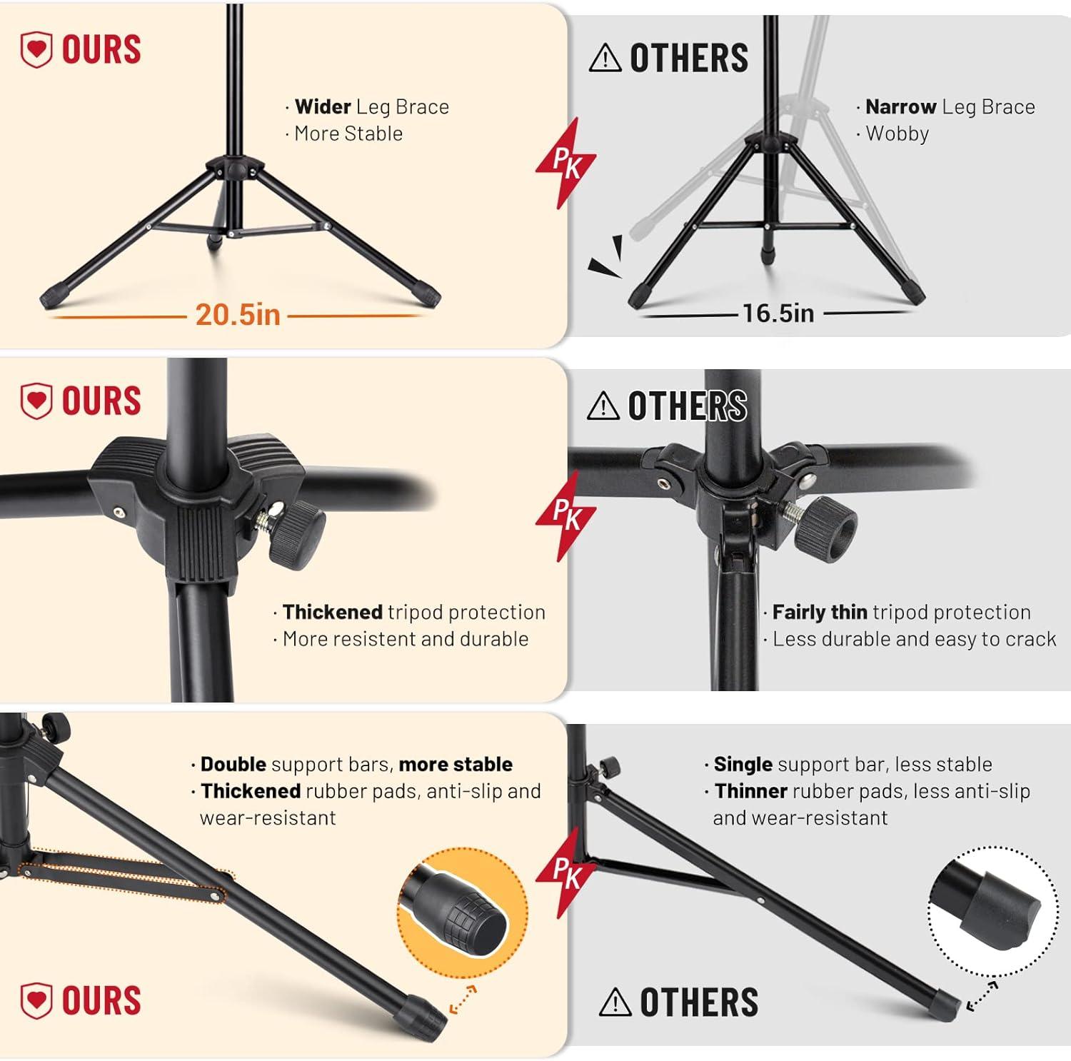STURDY AND RELIABLE METAL SUPPORT: Constructed with thickened durable metal tripod legs, this music stand offers stability even under heavy loads of 11 lbs. The non-slip rubber caps at the bottom ensure a secure grip, preventing any wobble, even when fully extended. It’s built to last, whether you’re using it indoors or in outdoor conditions!