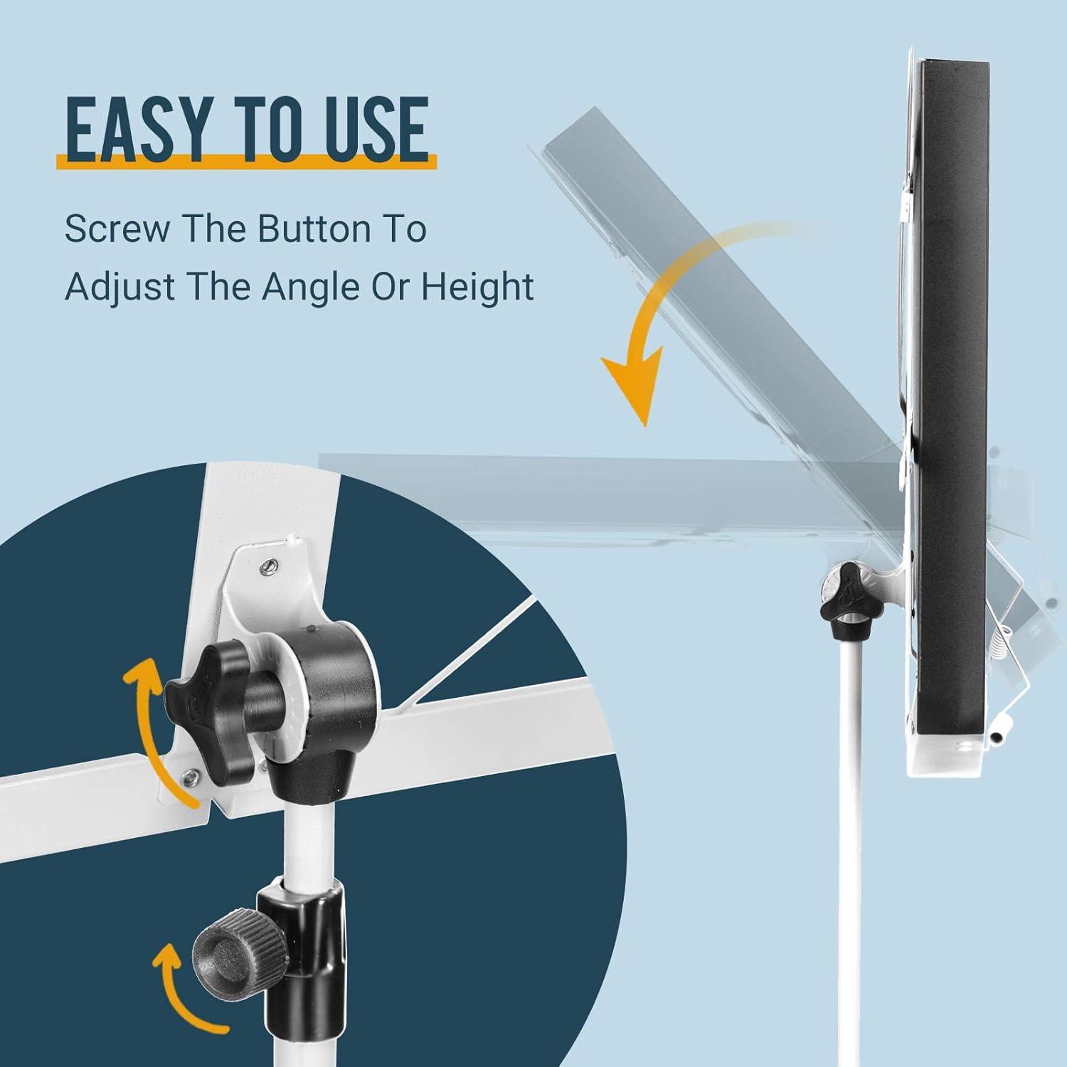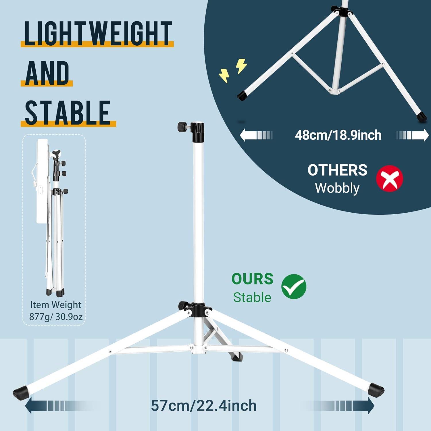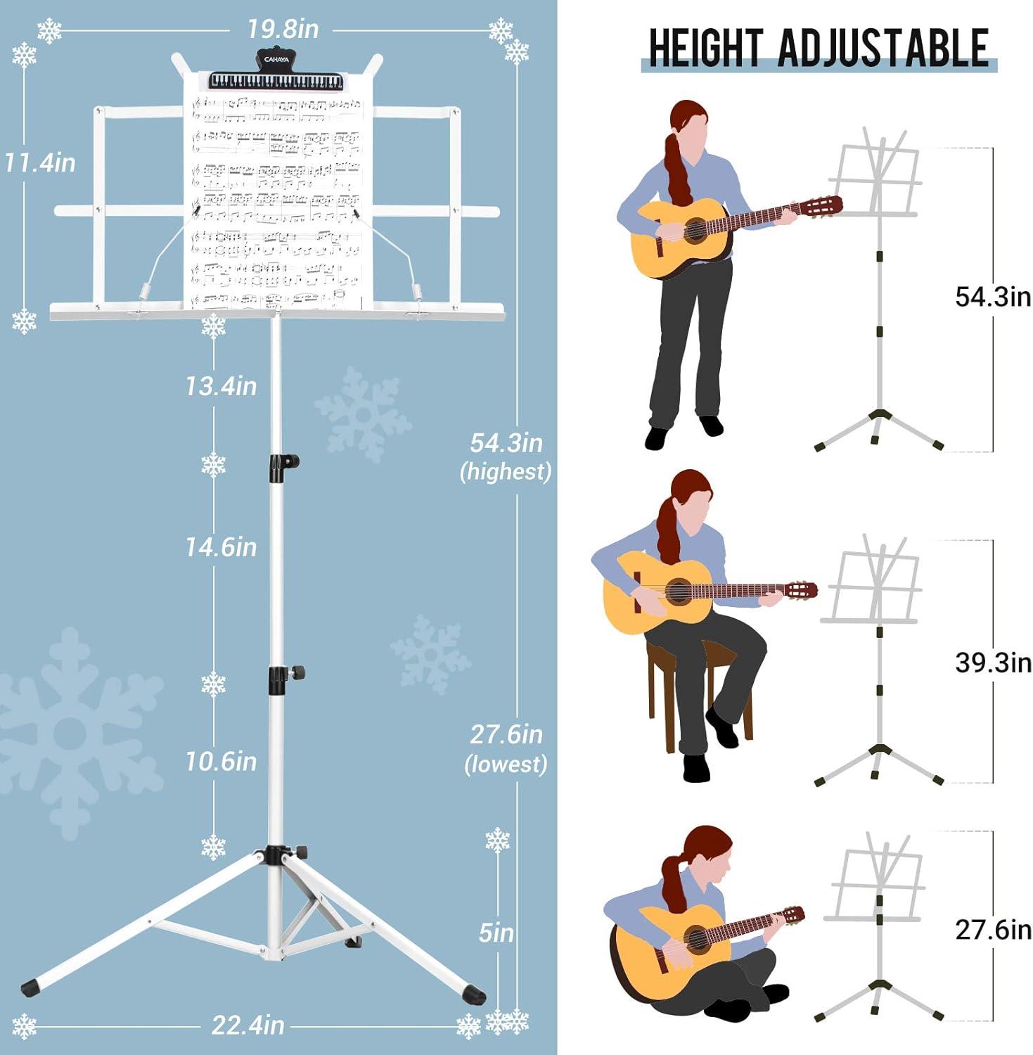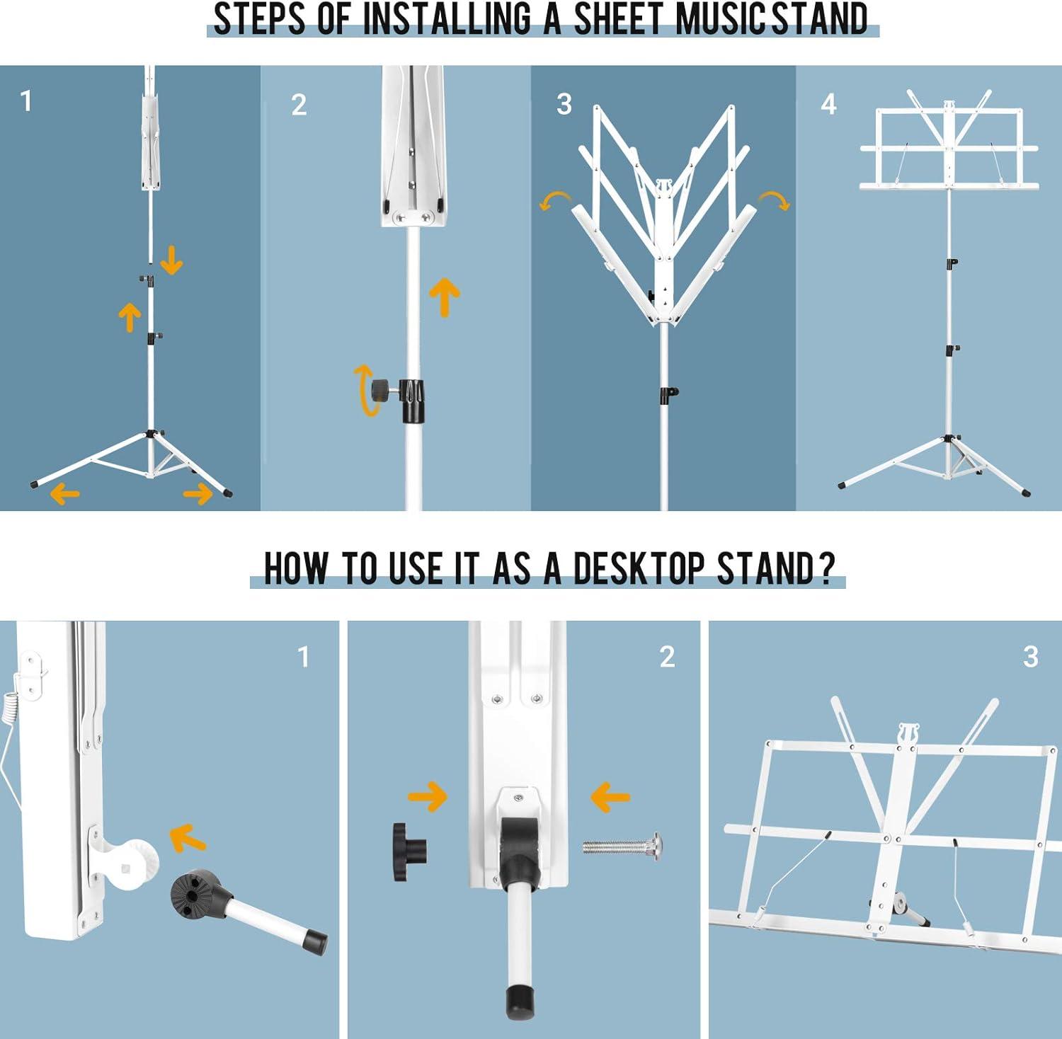 CAHAYA Portable Sheet Music Stand: Dual Use Desktop Book Holder Folding Lightweight Extra Stable Reinforced with Carrying Bag and Clip for Students Musicians Height Adjustable up to 54.3" CMS0204(White)