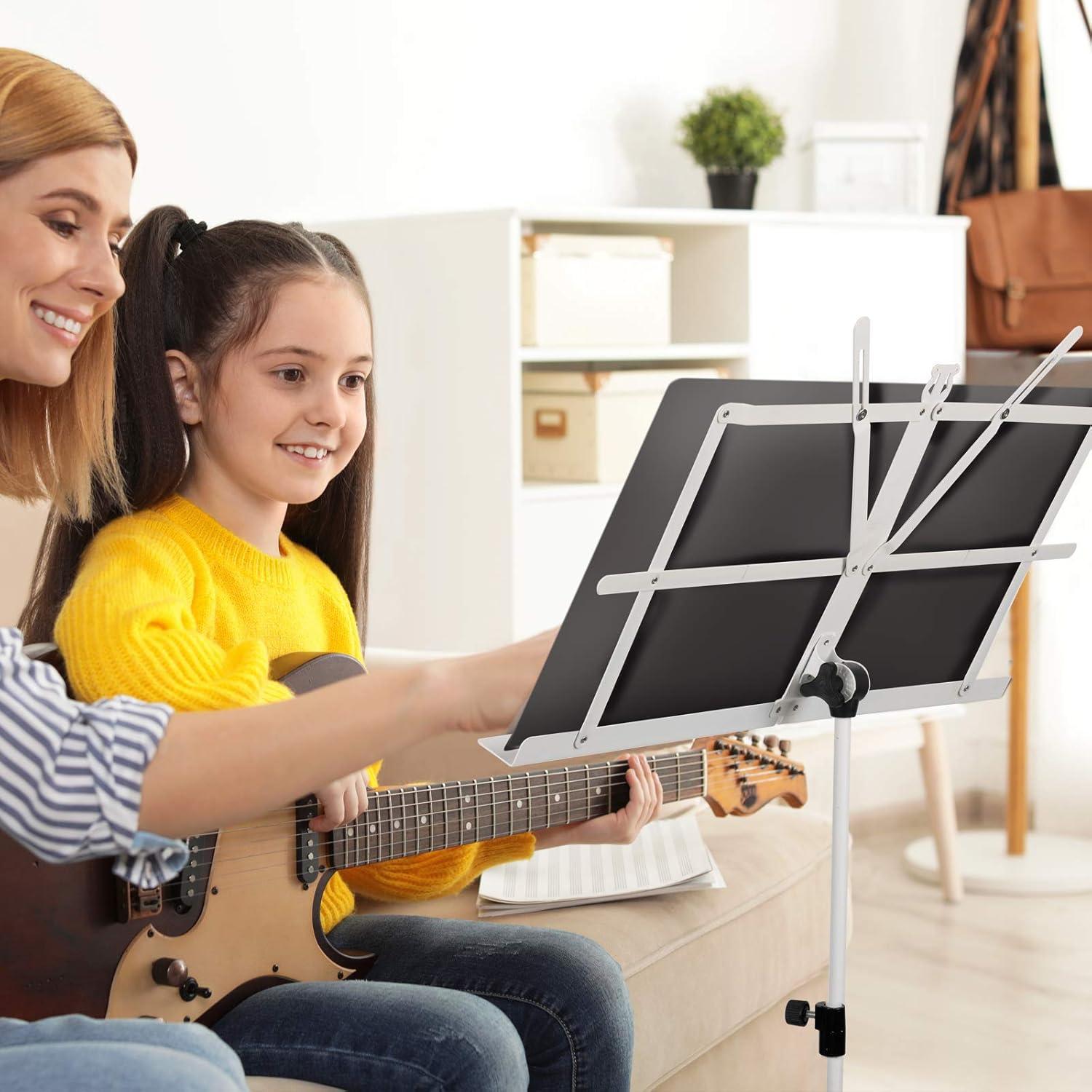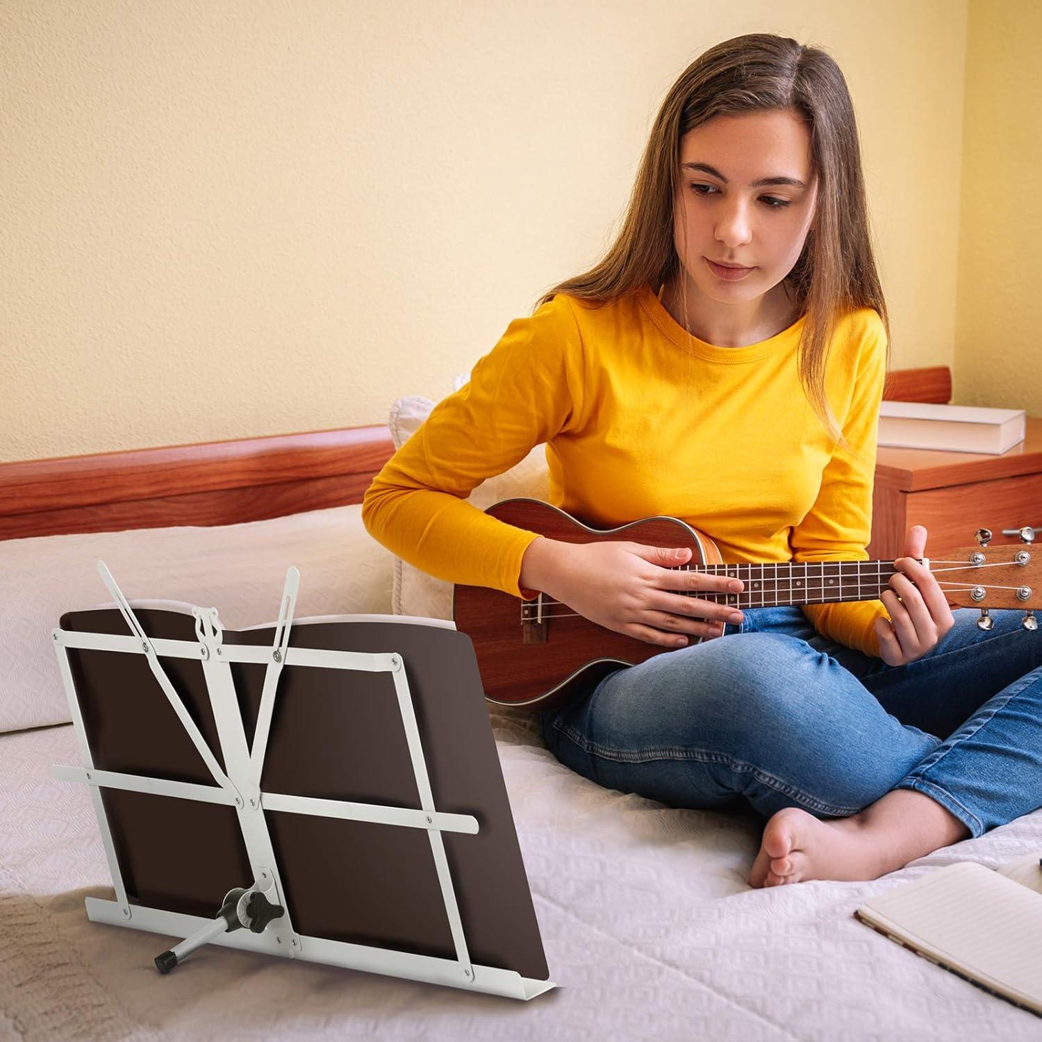 LIGHTWEIGHT AND EASY TO TRANSPORT: This music sheet stand is lightweight and designed for ultimate portability. The included carrying bag allows for quick storage without the need for disassembly, you can easily fold and store the music stand in seconds. Take it with you wherever you go—perfect for musicians on the move.