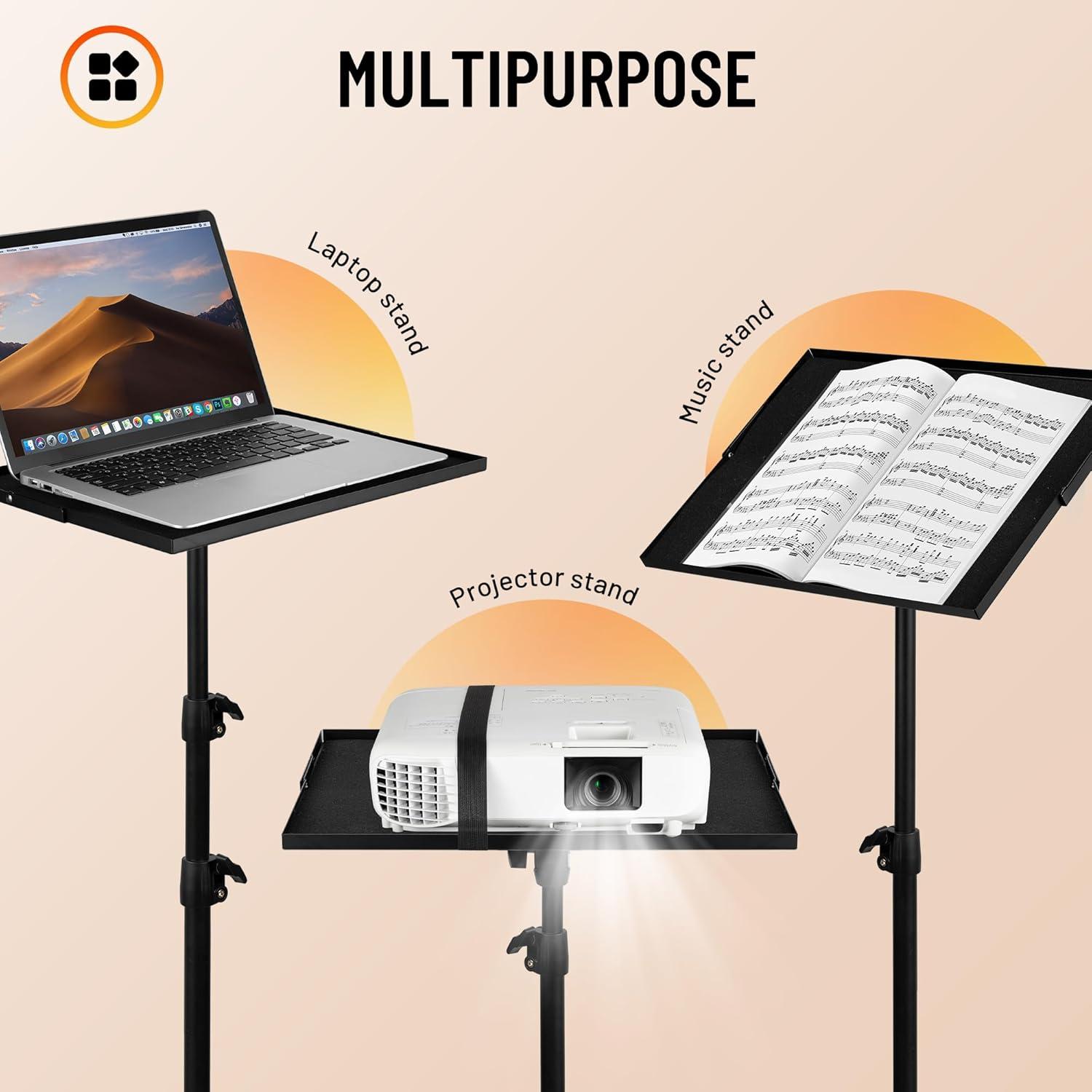 Versatile Multipurpose Stand: CAHAYA stand serves not only as a projector stand but also doubles as a laptop stand or music stand. Its adaptable design meets various needs, offering flexible functionality for work, study, and creative pursuits.