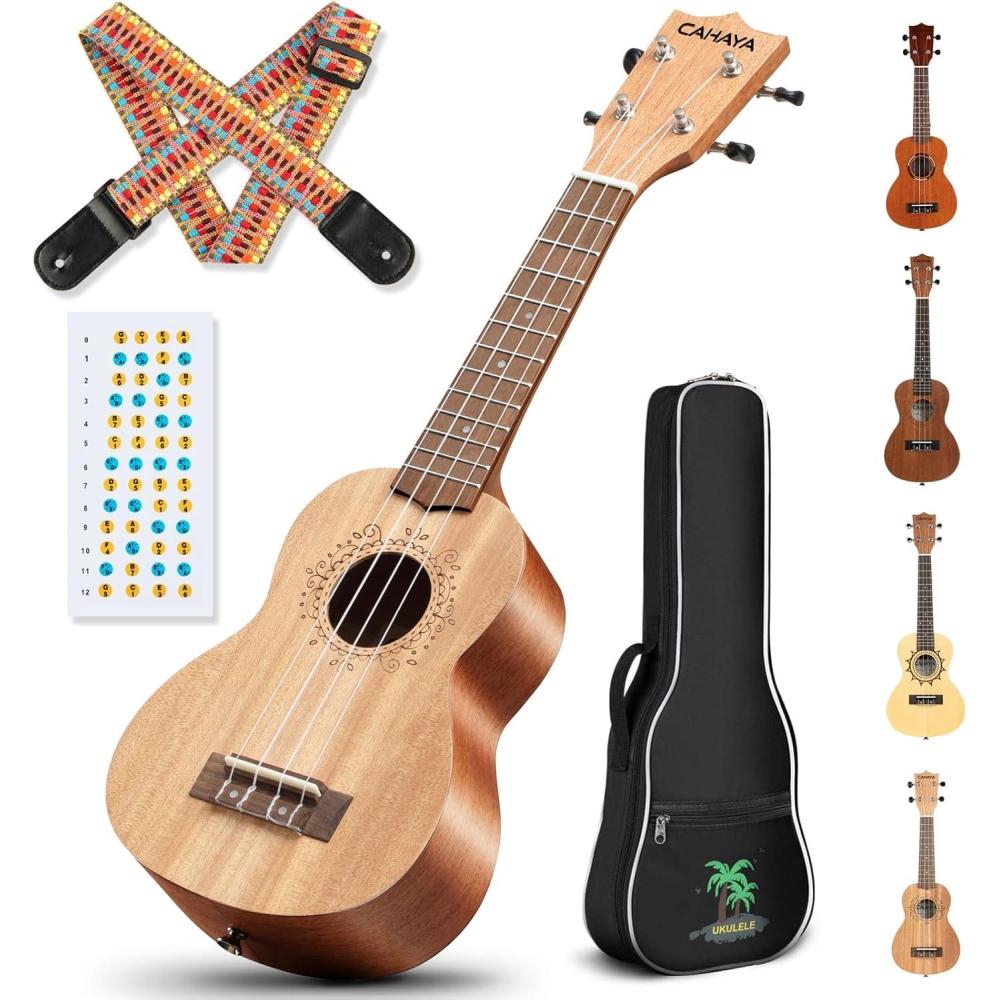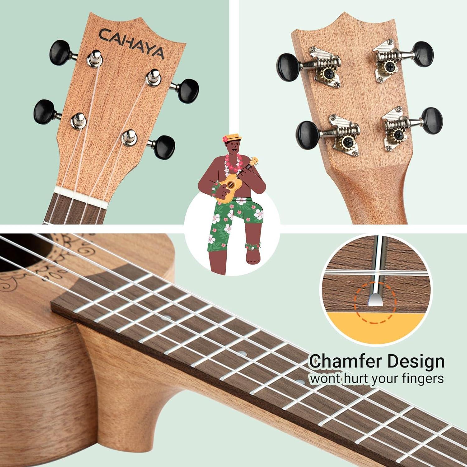 CAHAYA Soprano Ukulele 21 Inch: Made of high quality mahogany, delivers a warm and full sound with excellent sustain, complementing the naturally higher pitch of the instrument, making it particularly suitable for accompaniment and singing, allowing musicians to create expressive and captivating musical pieces.