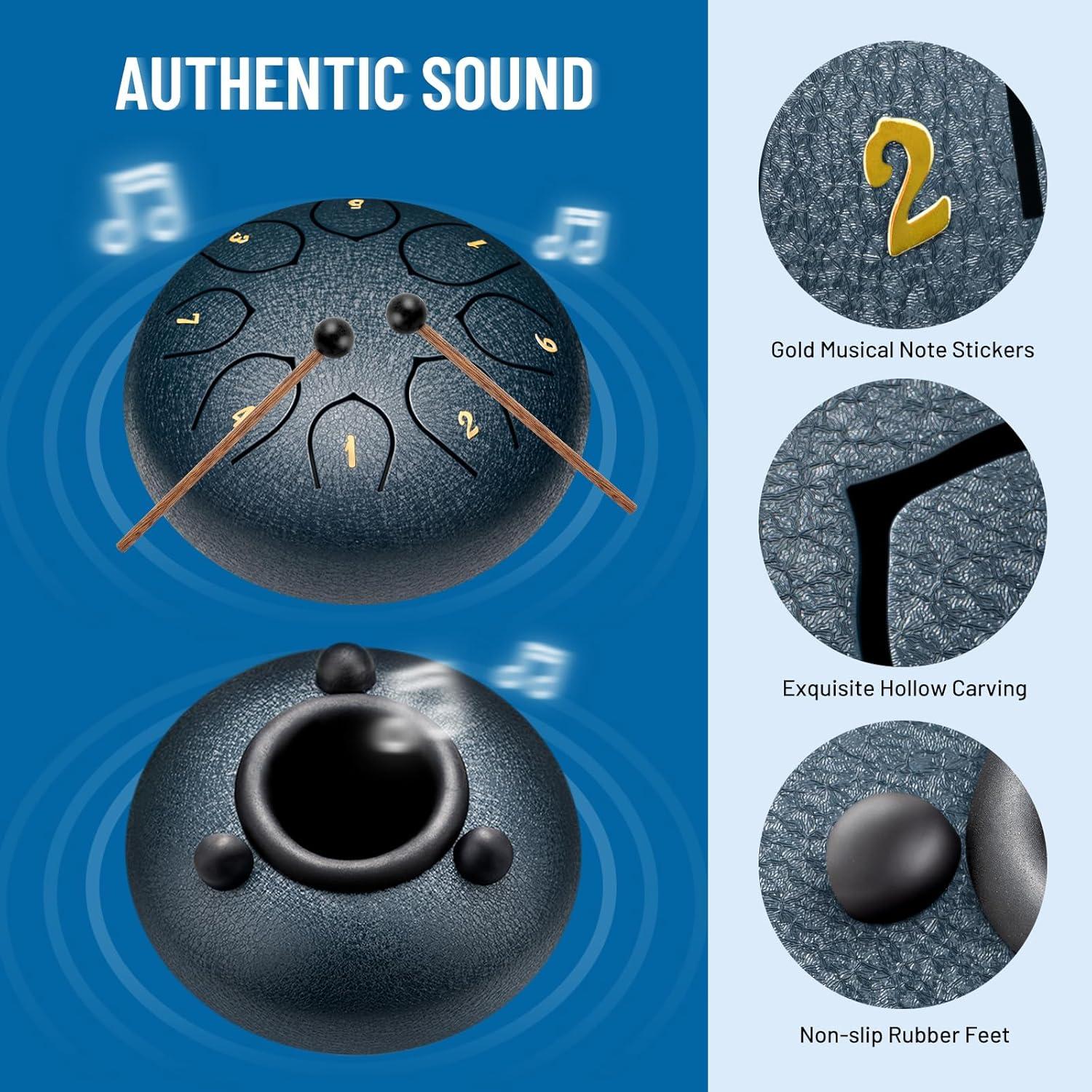 CAHAYA Steel Tongue Drum Set 6 Inch 8 Notes Steel Hand Drum with Music Book Drum Mallets Finger Paddles and Carry Bag for Kids Gift Musical Education Meditation Yoga CY0359(Navy blue(11 tones))