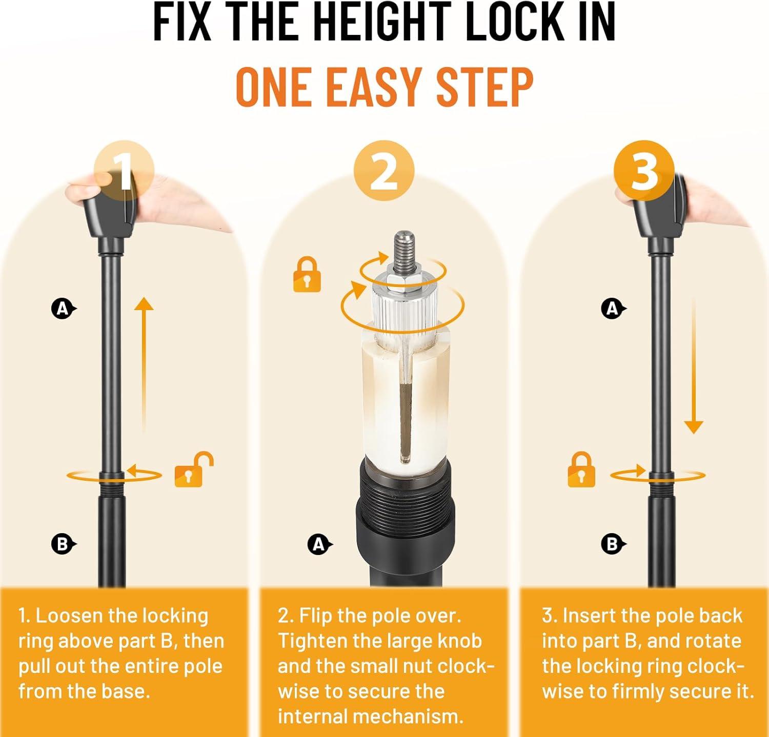 One-Button Height Adjustment: Compared with traditional microphone stands, the biggest difference of CAHAYA mic stand is the unique one-hand height adjustment handle. Allowing you to easily adjust the product's height with a single button, ranging from 41.3 inches to 65.3 inches. No more need to struggle with various knobs; adjusting the height becomes effortless! ***If the grip cannot lock the height, pls remove the middle pole and tighten the internal screws.